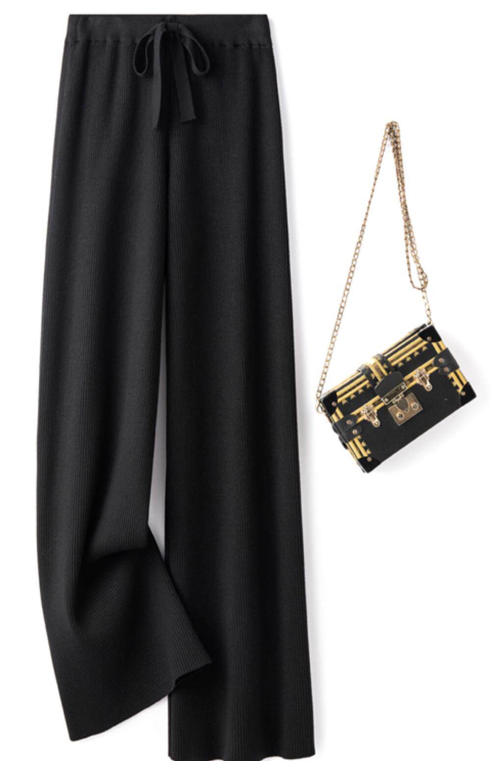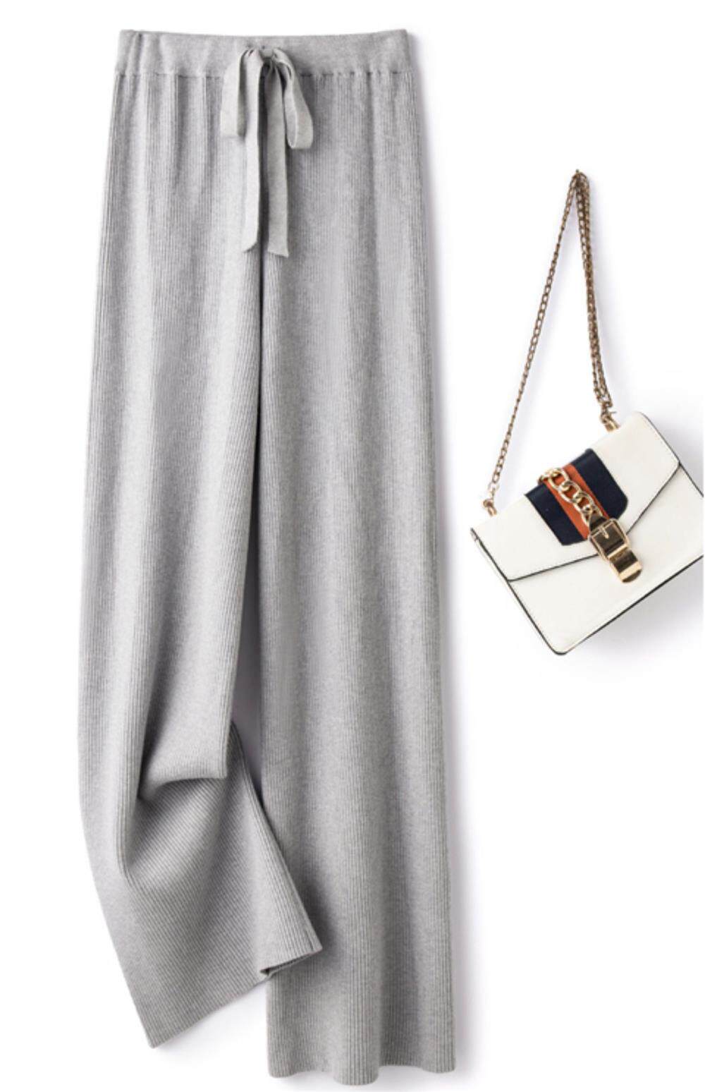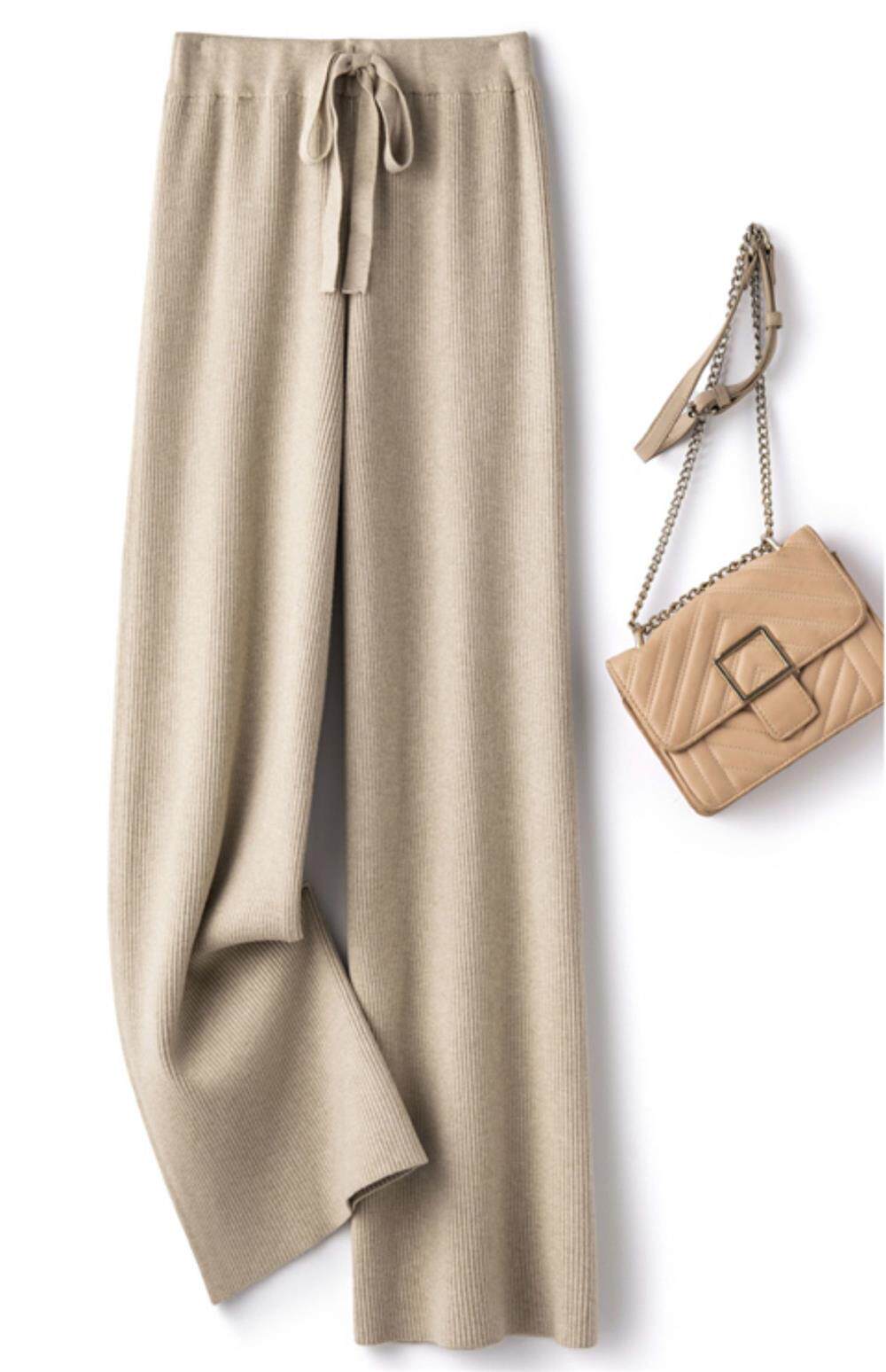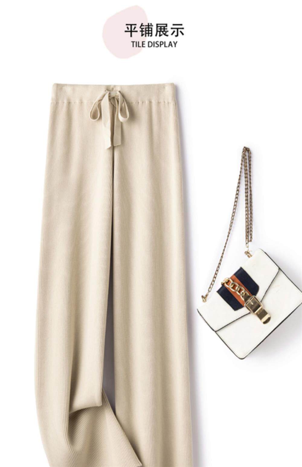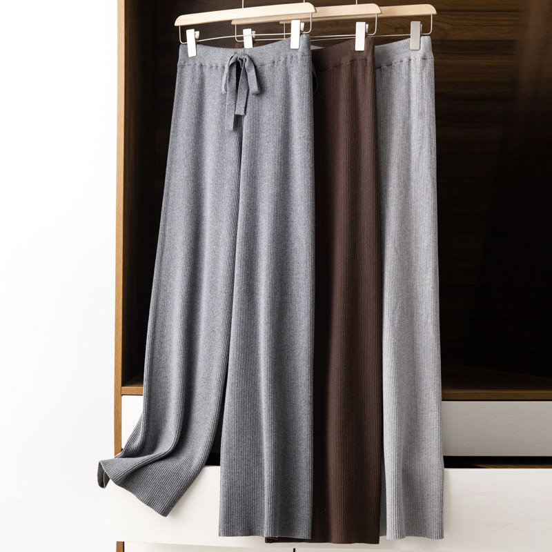 Демисезонные трикотажные кашемировые длинные штаны, высокая талия, в корейском стиле, свободный прямой крой