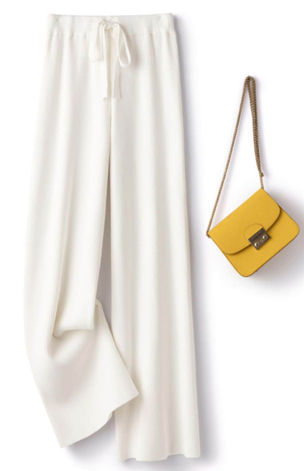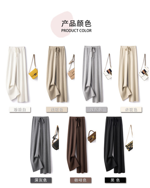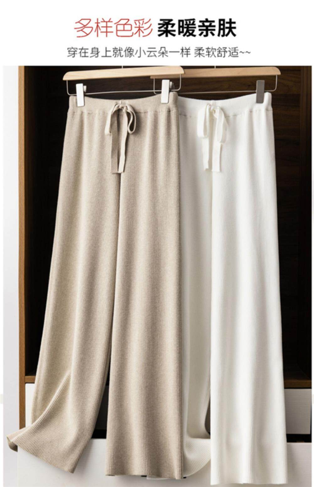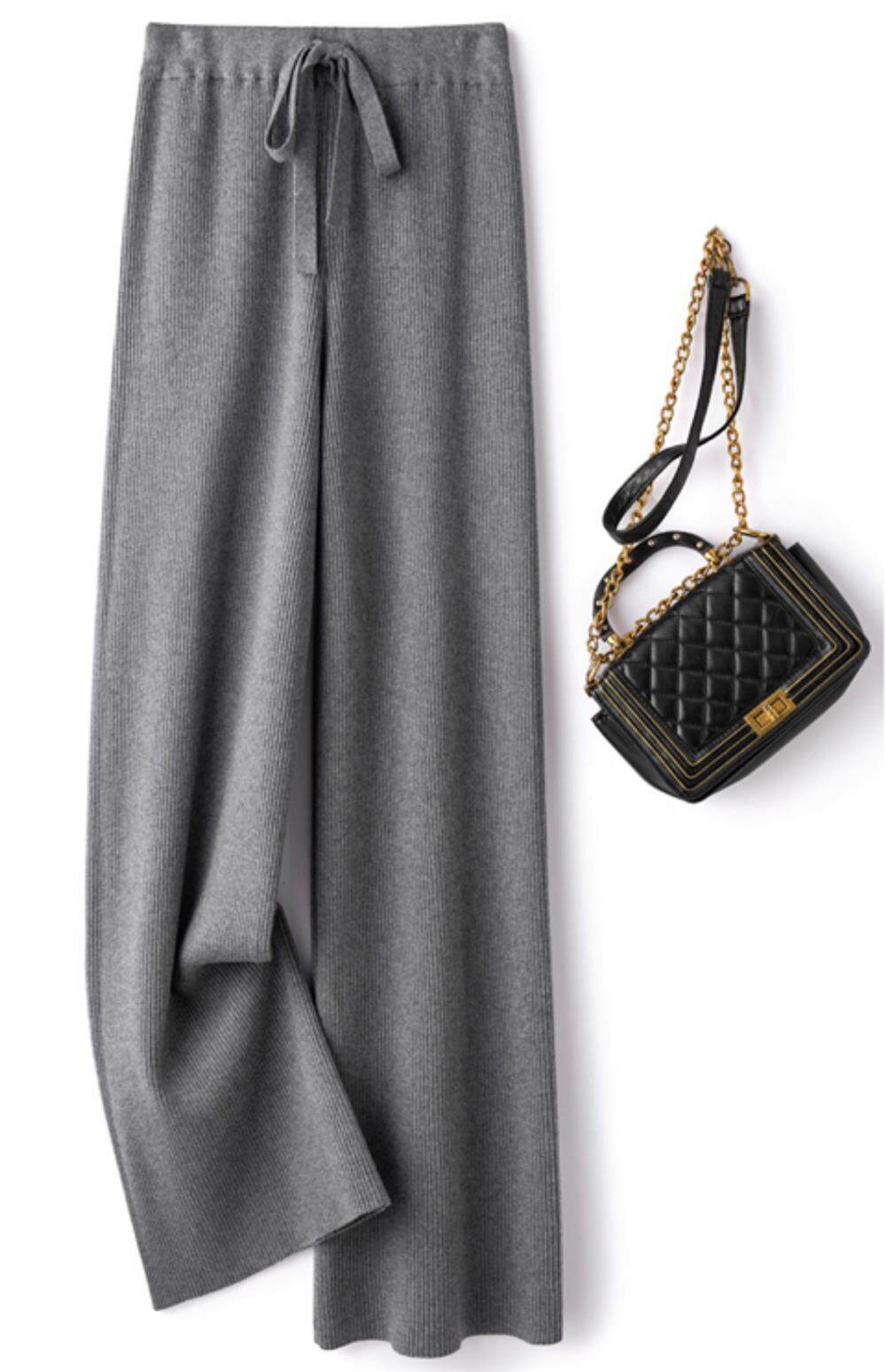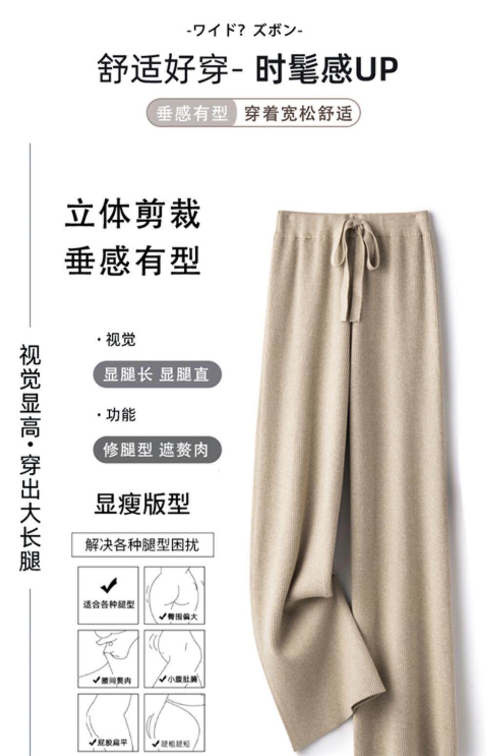 Демисезонные трикотажные кашемировые длинные штаны, высокая талия, в корейском стиле, свободный прямой крой