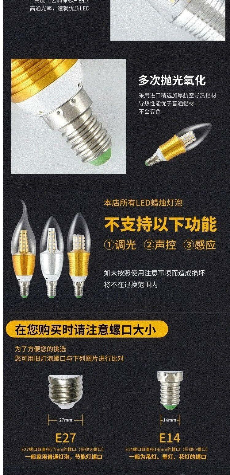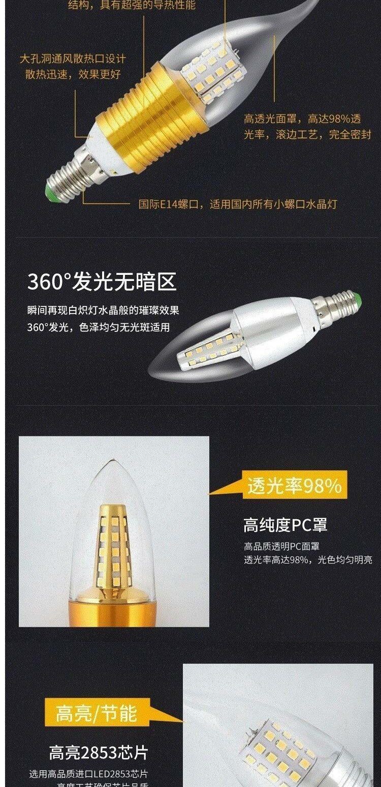 Светодиодная свеча, лампочка, энергосберегающая подвеска из кварца, люстра, с винтовым цоколем
