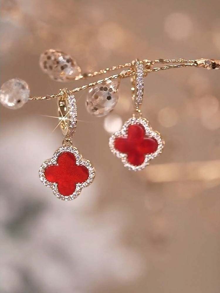 Небольшие серьги, золото 750 пробы, четырехлистный клевер, в стиле Шанель