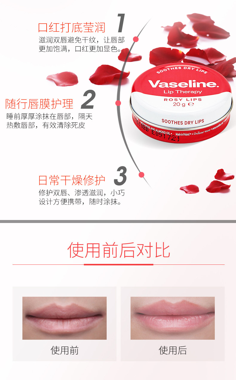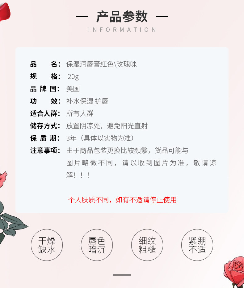 Вазелин, красный бальзам для губ с розой в составе, увлажняющая демисезонная защитная помада, 20г, против трещин