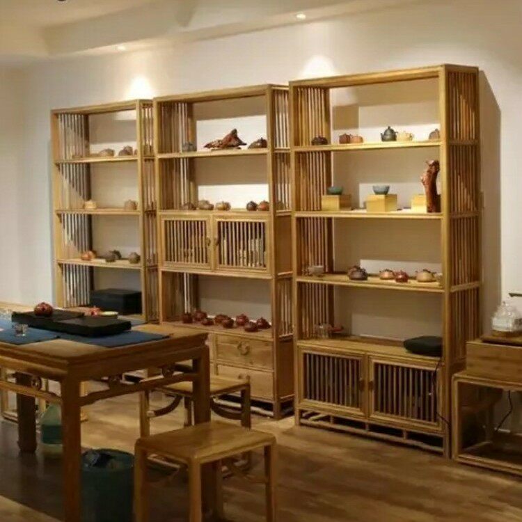 Мебель Laocoma Новая китайская рама Bogu Zen Show Shafe Disposter Установите сплошные полки Оригинальная комбинация книжных шкафов Real Kimu