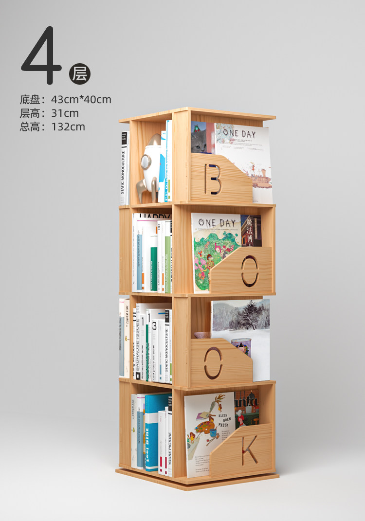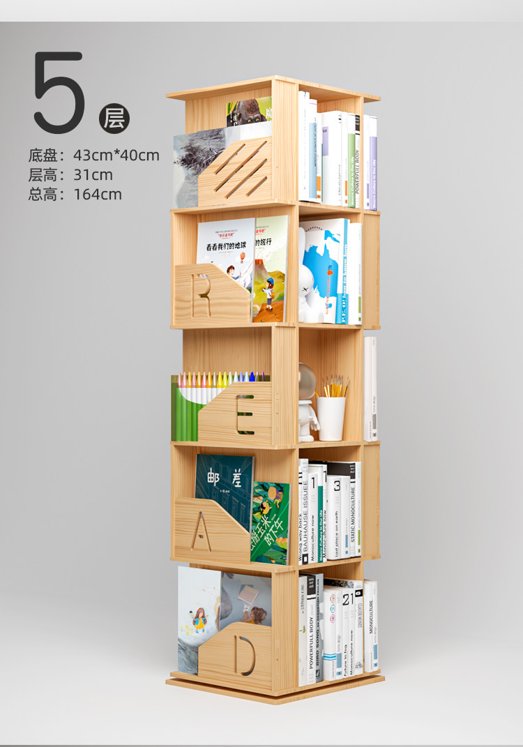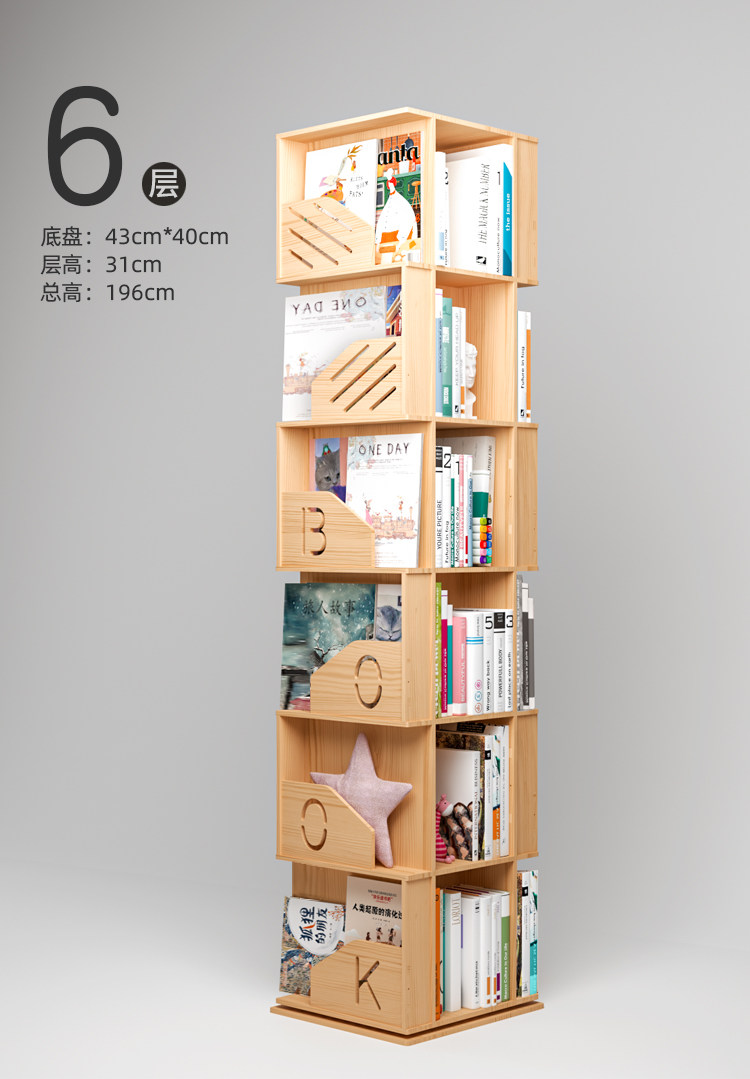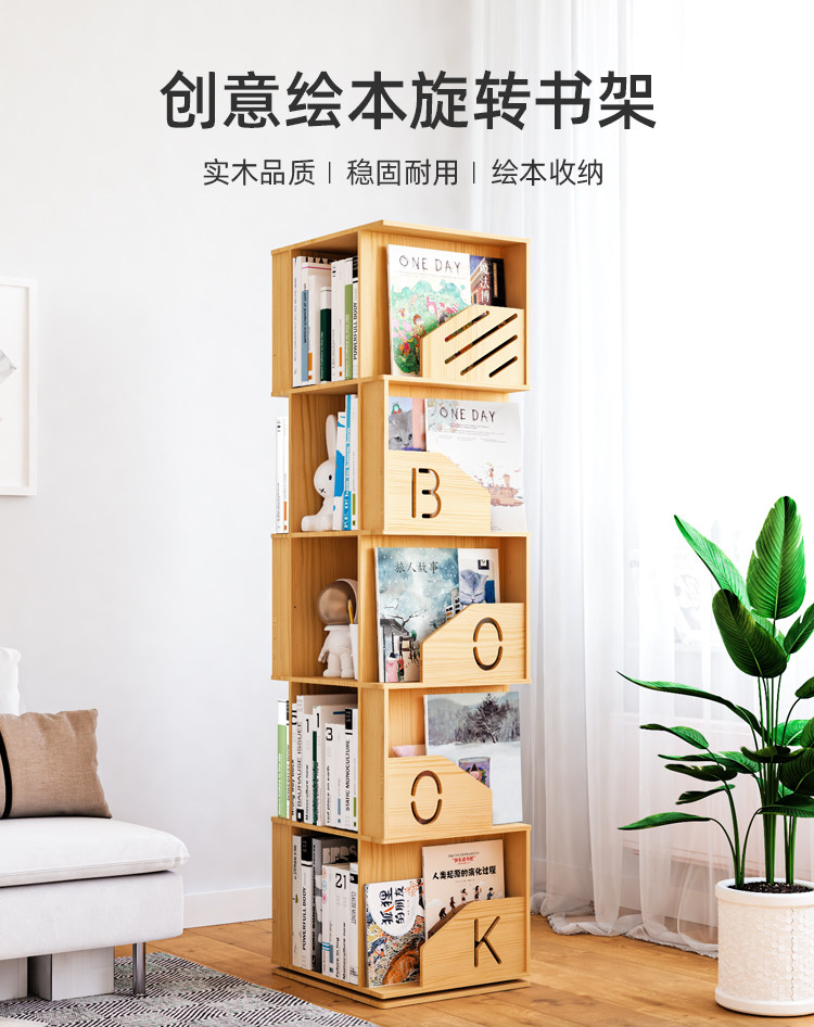 Крутящаяся книжная полка из натурального дерева, книжный шкаф, книга с картинками для школьников