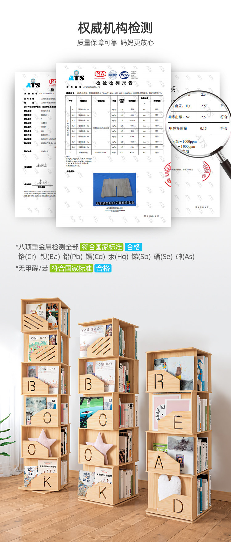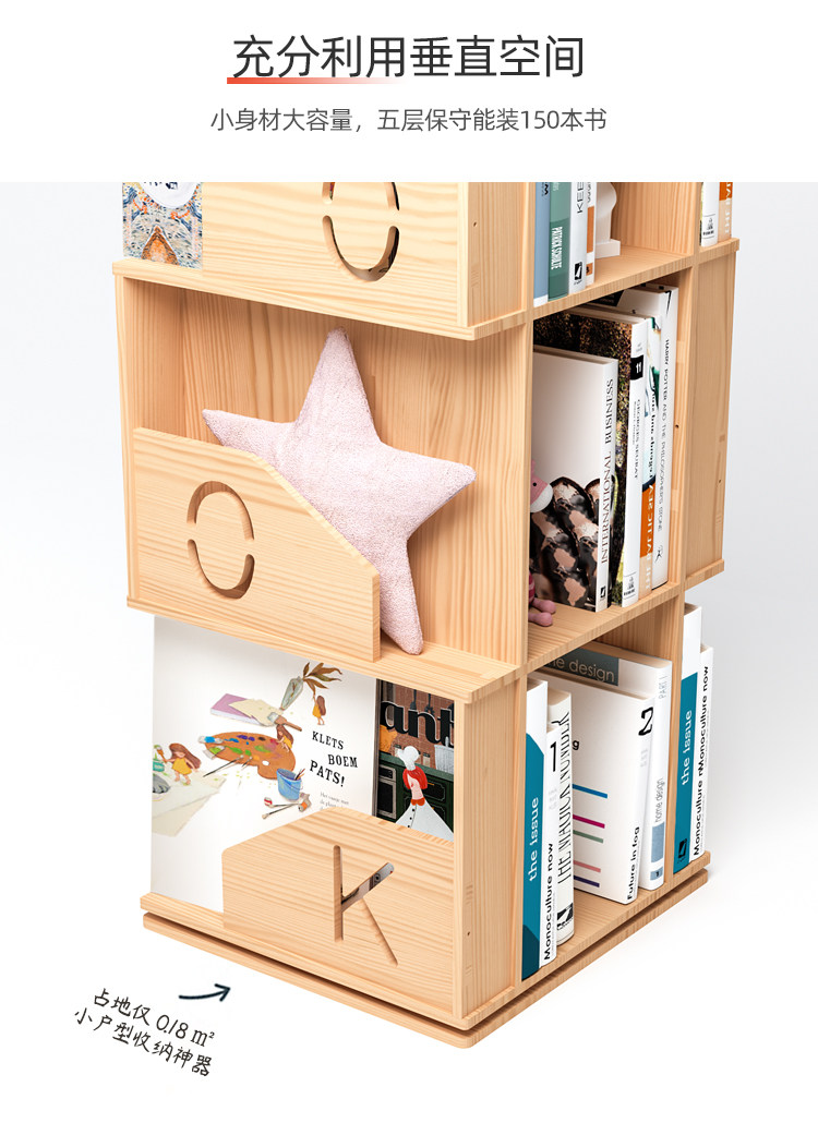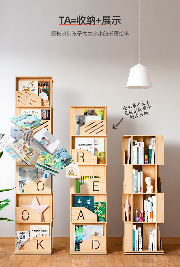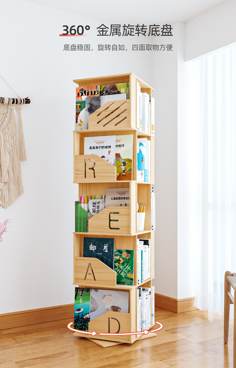Крутящаяся книжная полка из натурального дерева, книжный шкаф, книга с картинками для школьников