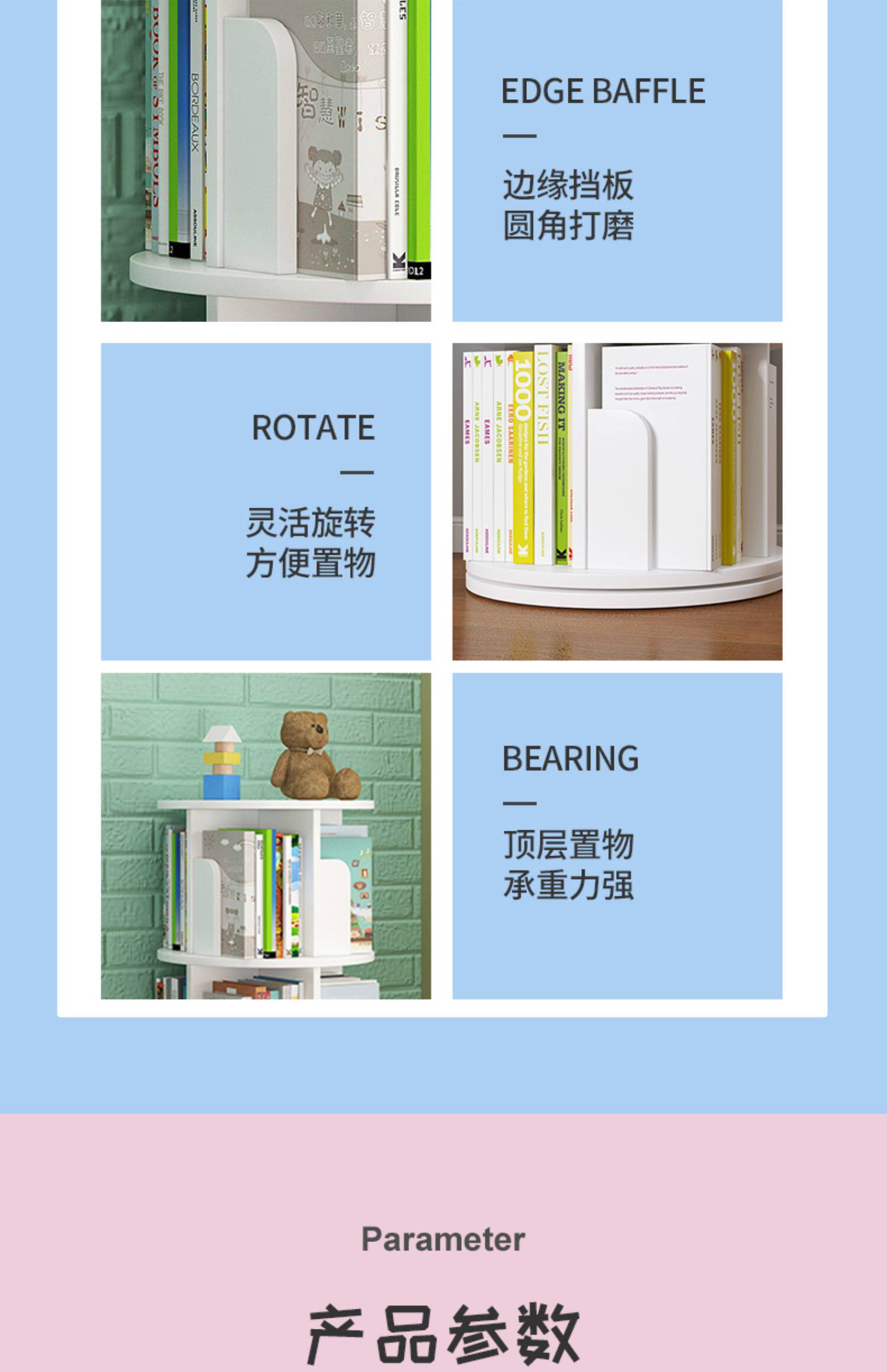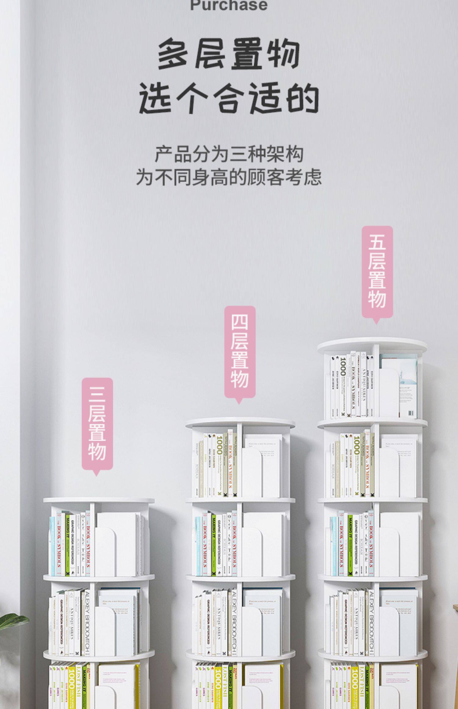 Крутящаяся книжная полка, простая многослойная система хранения для спальни, книжный шкаф
