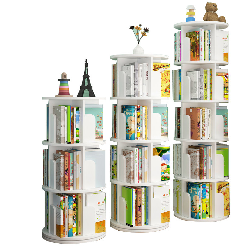 Крутящаяся книжная полка для школьников, простой книжный шкаф для спальни, система хранения, многослойная книга с картинками