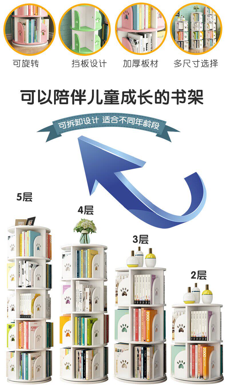 Книга с картинками, книжный шкаф, крутящаяся мультяшная книжная полка, система хранения
