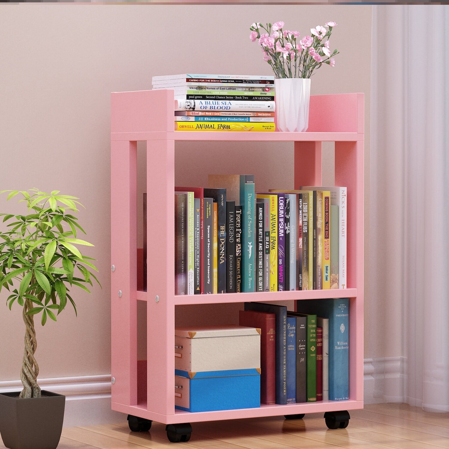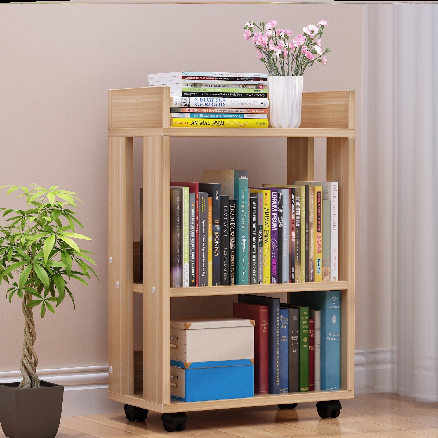 Книжная полка, книжный шкаф из натурального дерева, простая система хранения для школьников