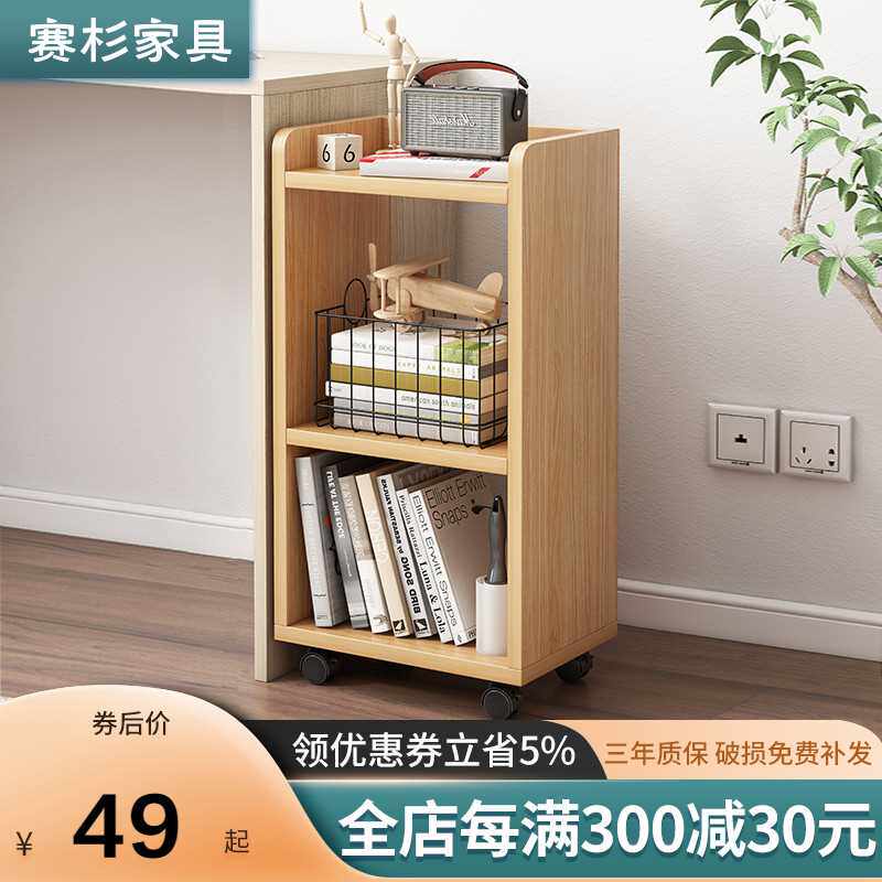 Небольшие книжные полки на столе могут переместить шкаф с колесами и небольшими хранениями.