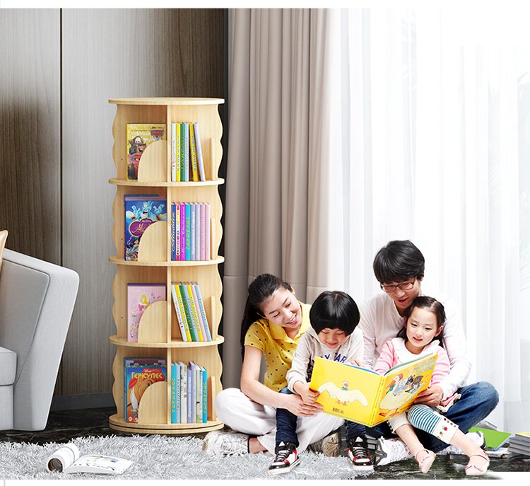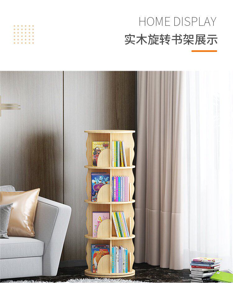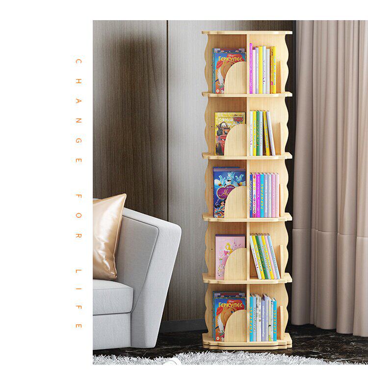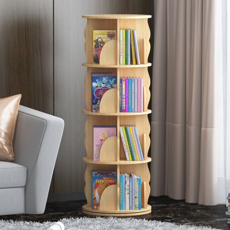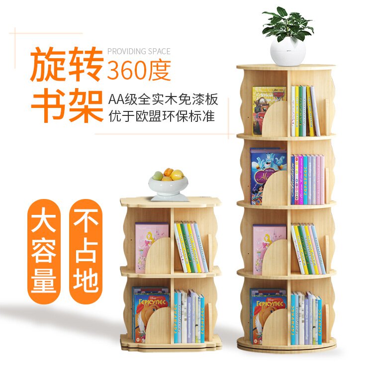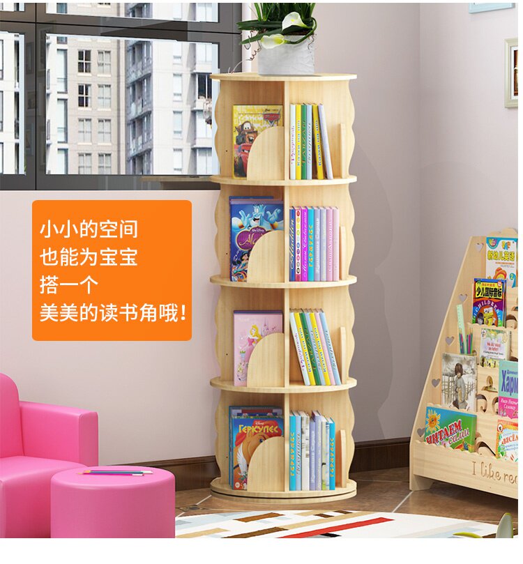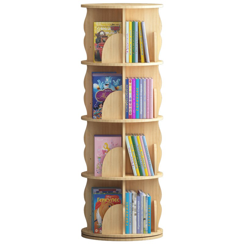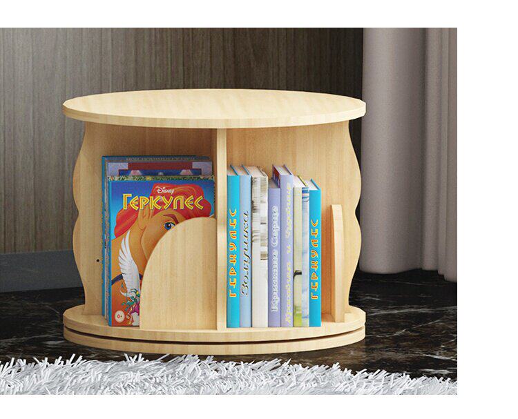 Крутящаяся книжная полка из натурального дерева, книга с картинками, система хранения, простой книжный шкаф для кровати с закругленными углами
