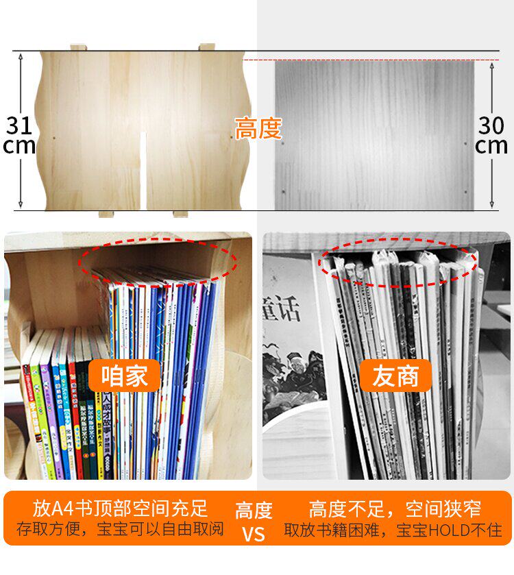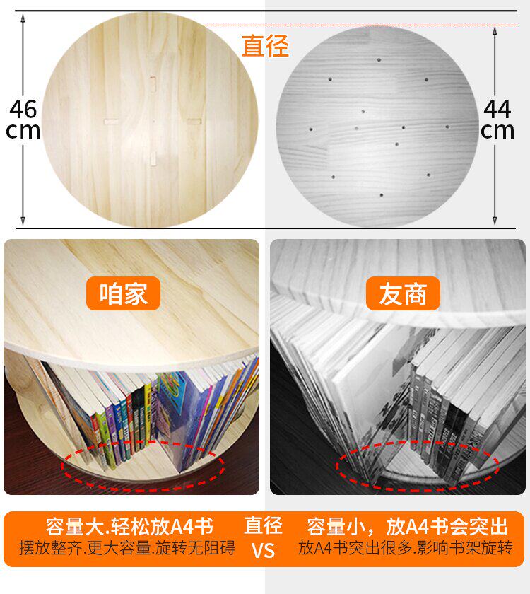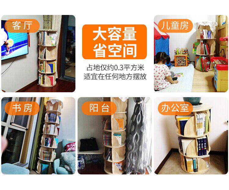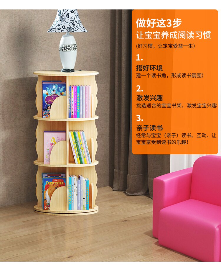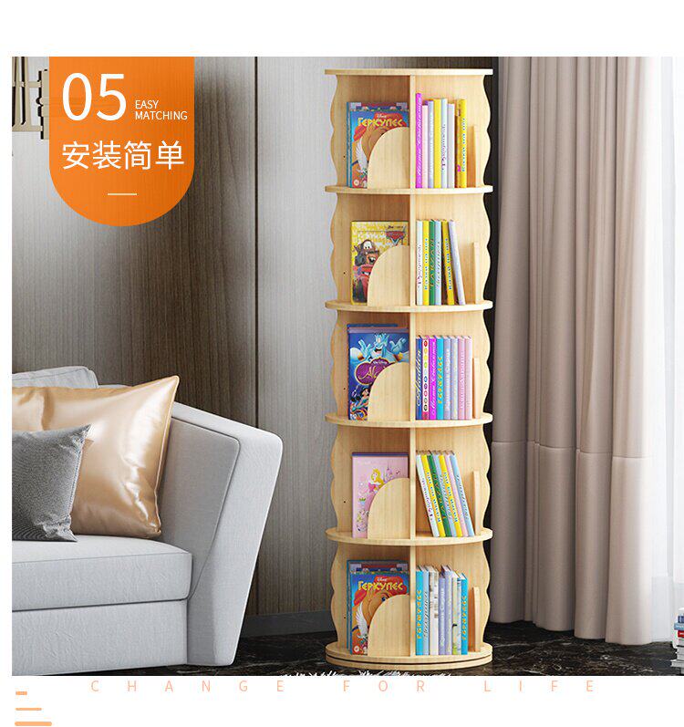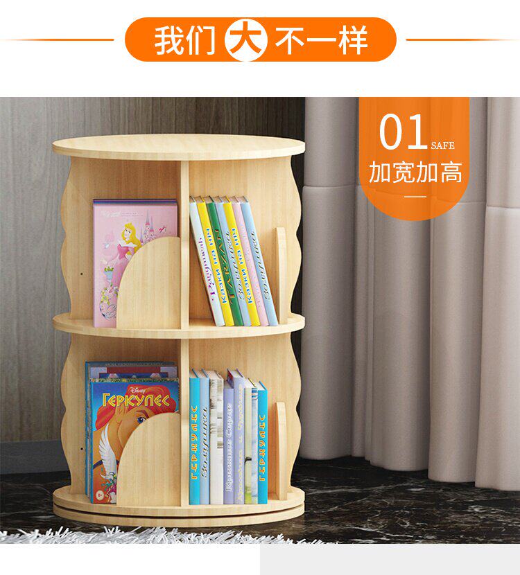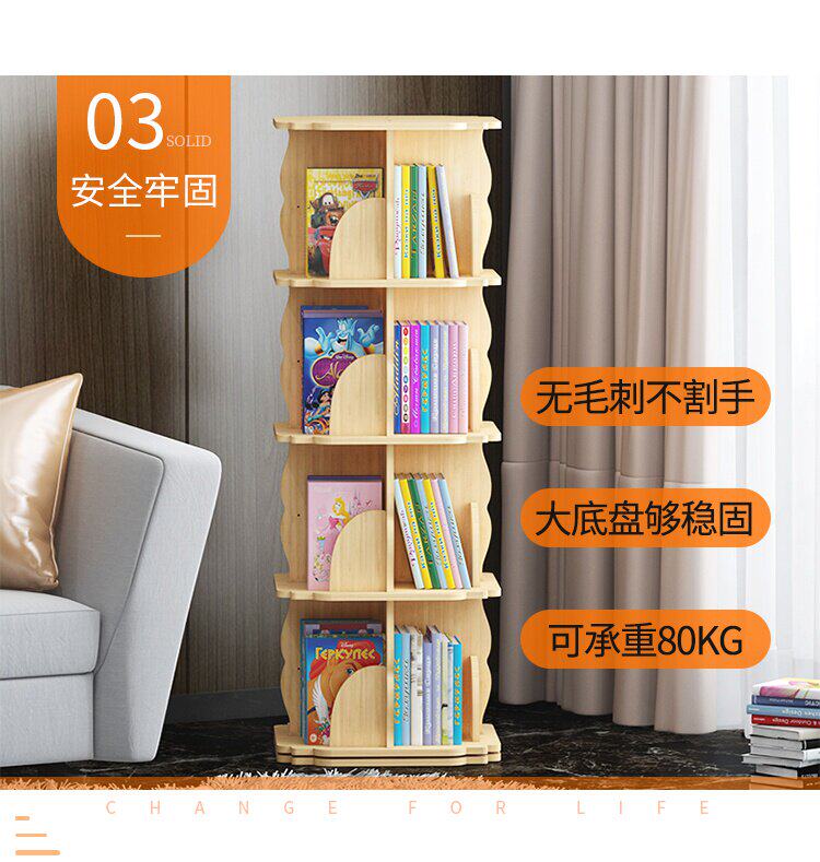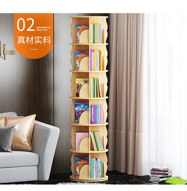 Крутящаяся книжная полка из натурального дерева, книга с картинками, система хранения, простой книжный шкаф для кровати с закругленными углами
