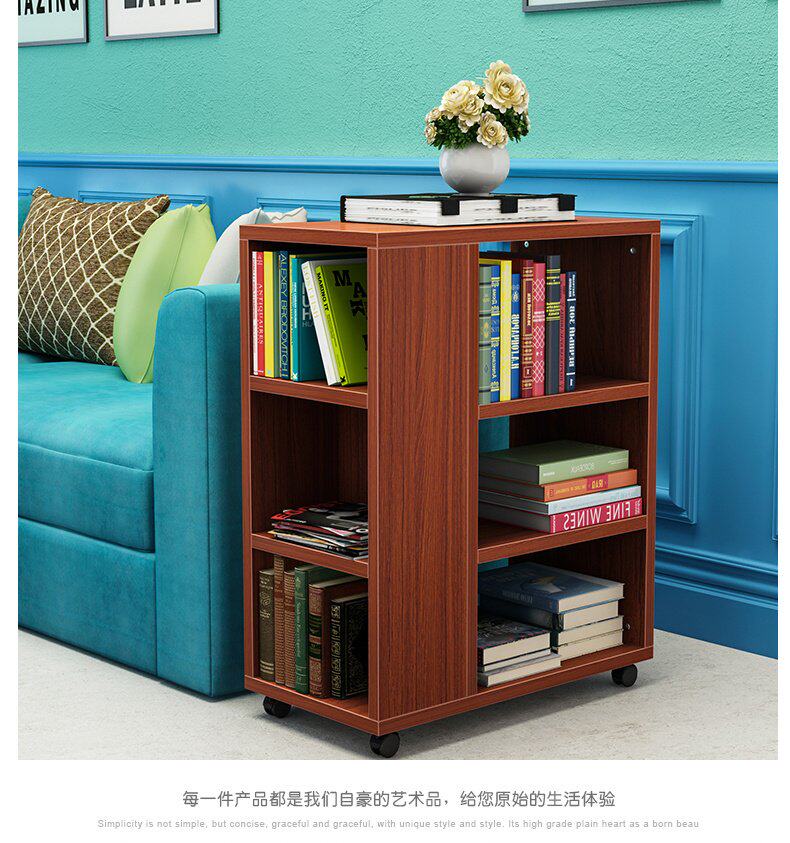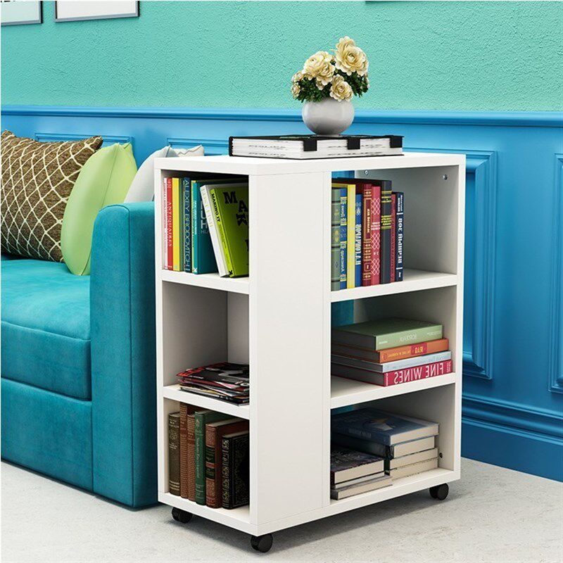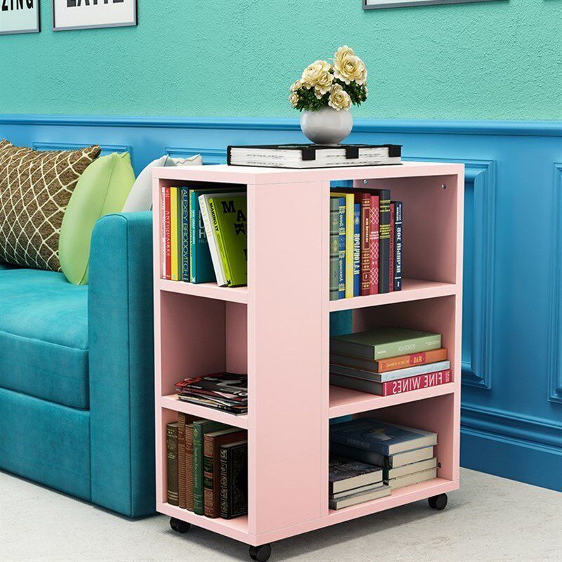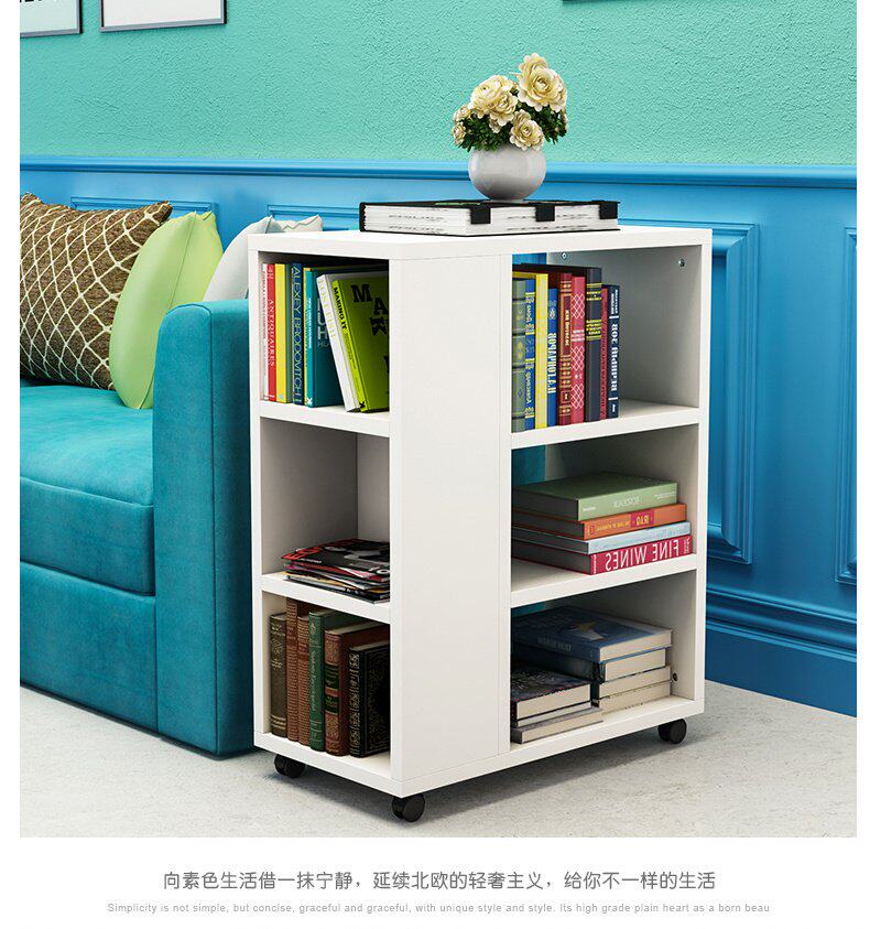 Книжная полка, передвижная стеллаж для хранения на колесиках, простой и креативный маленький детский книжный шкаф, полка P, напольная, для гостиной, со стороны дивана