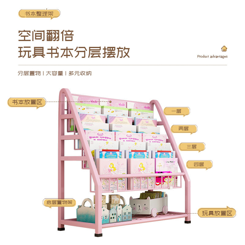 Простая книжная полка, многослойный книжный шкаф, книга с картинками, игрушка, система хранения