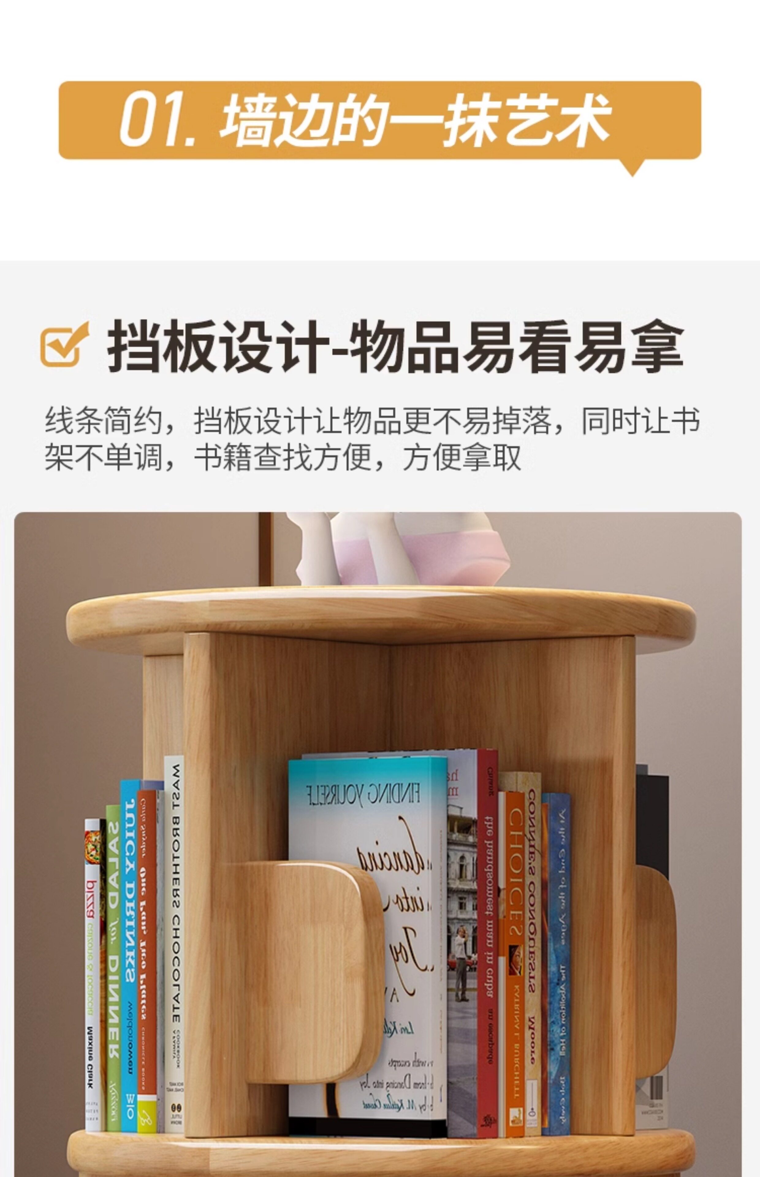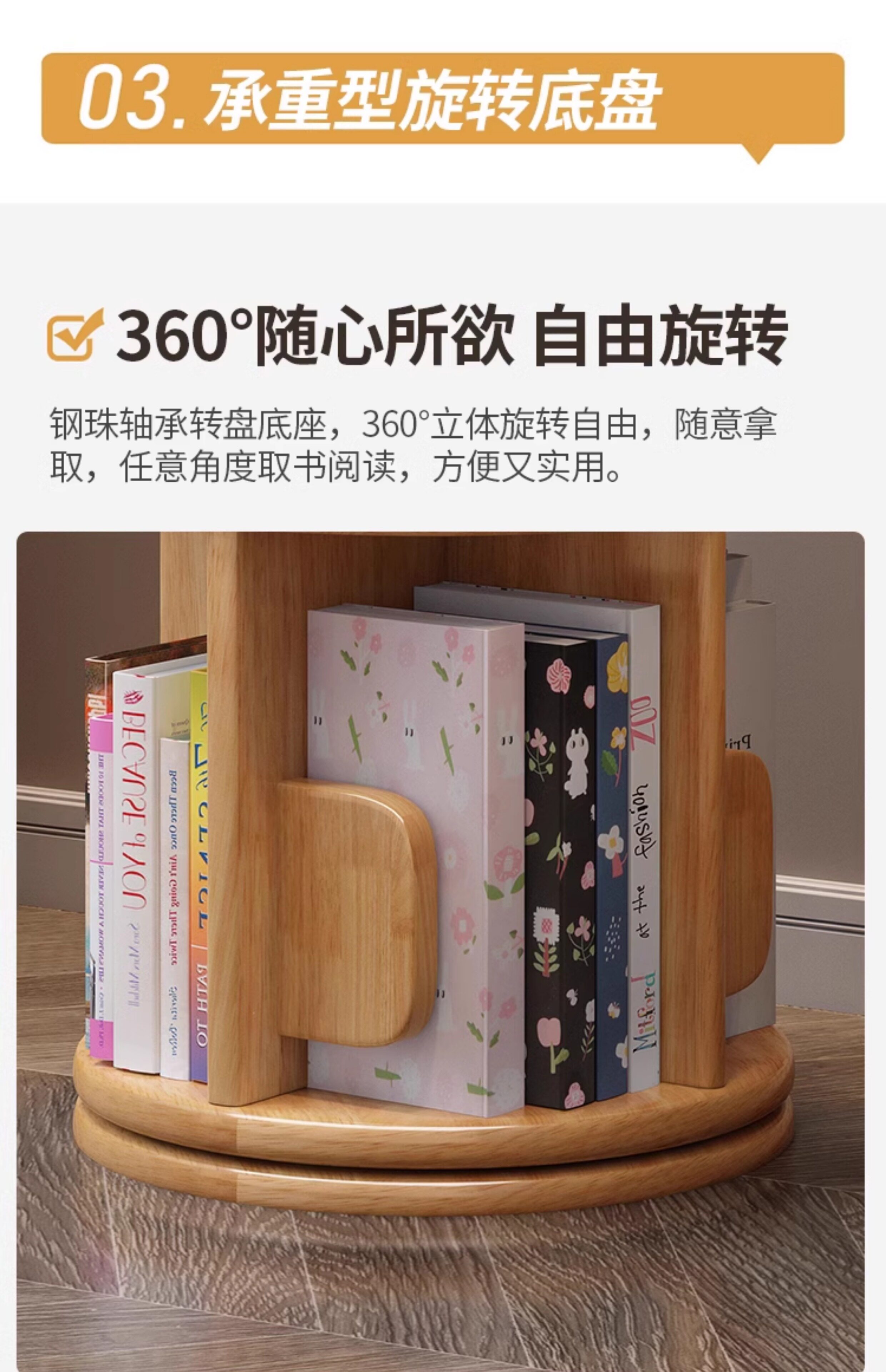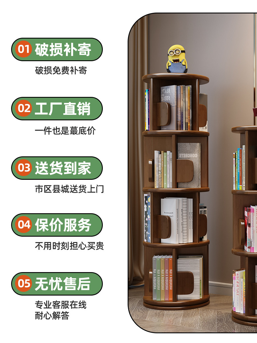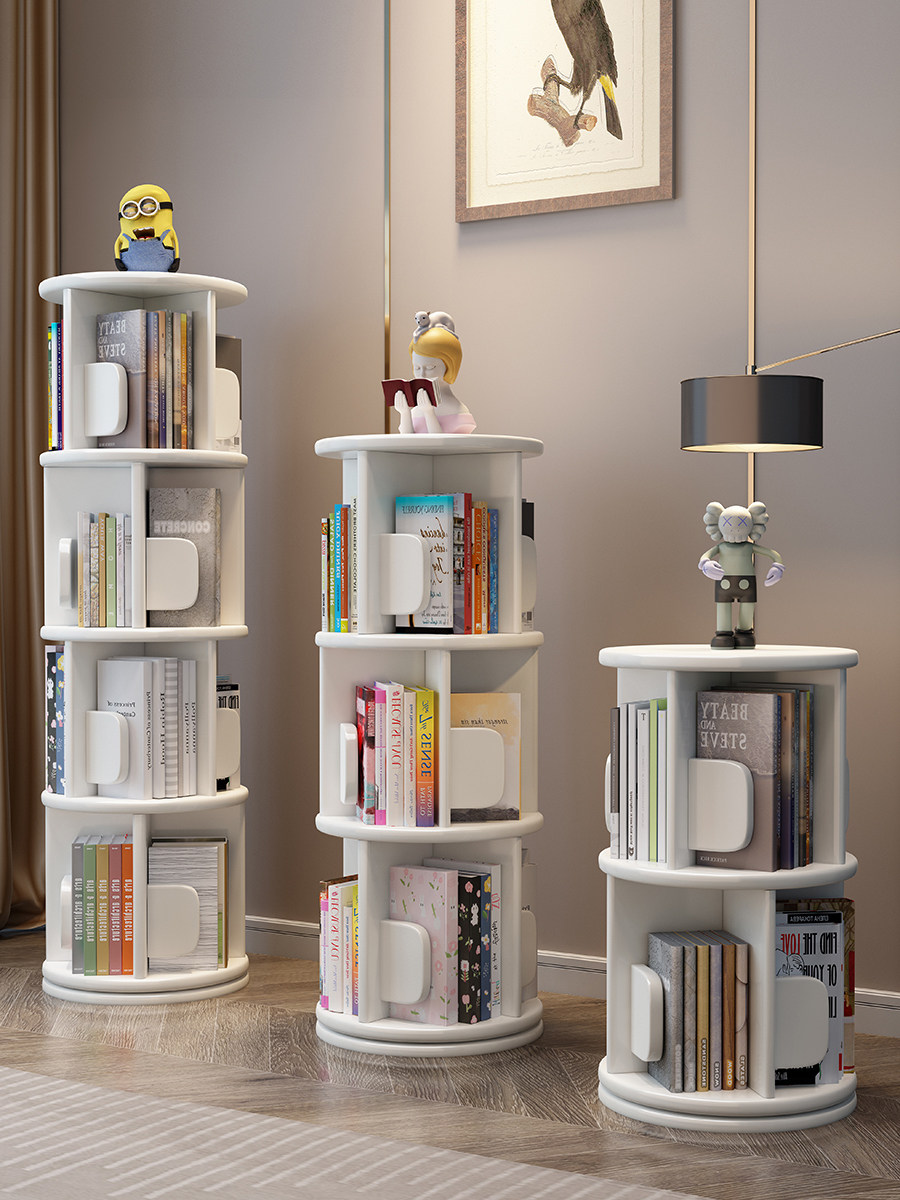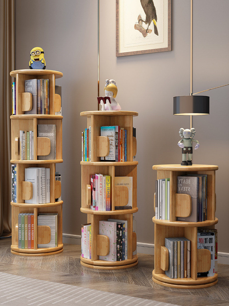 Крутящаяся книжная полка из натурального дерева, книга с картинками, простая система хранения, книжный шкаф