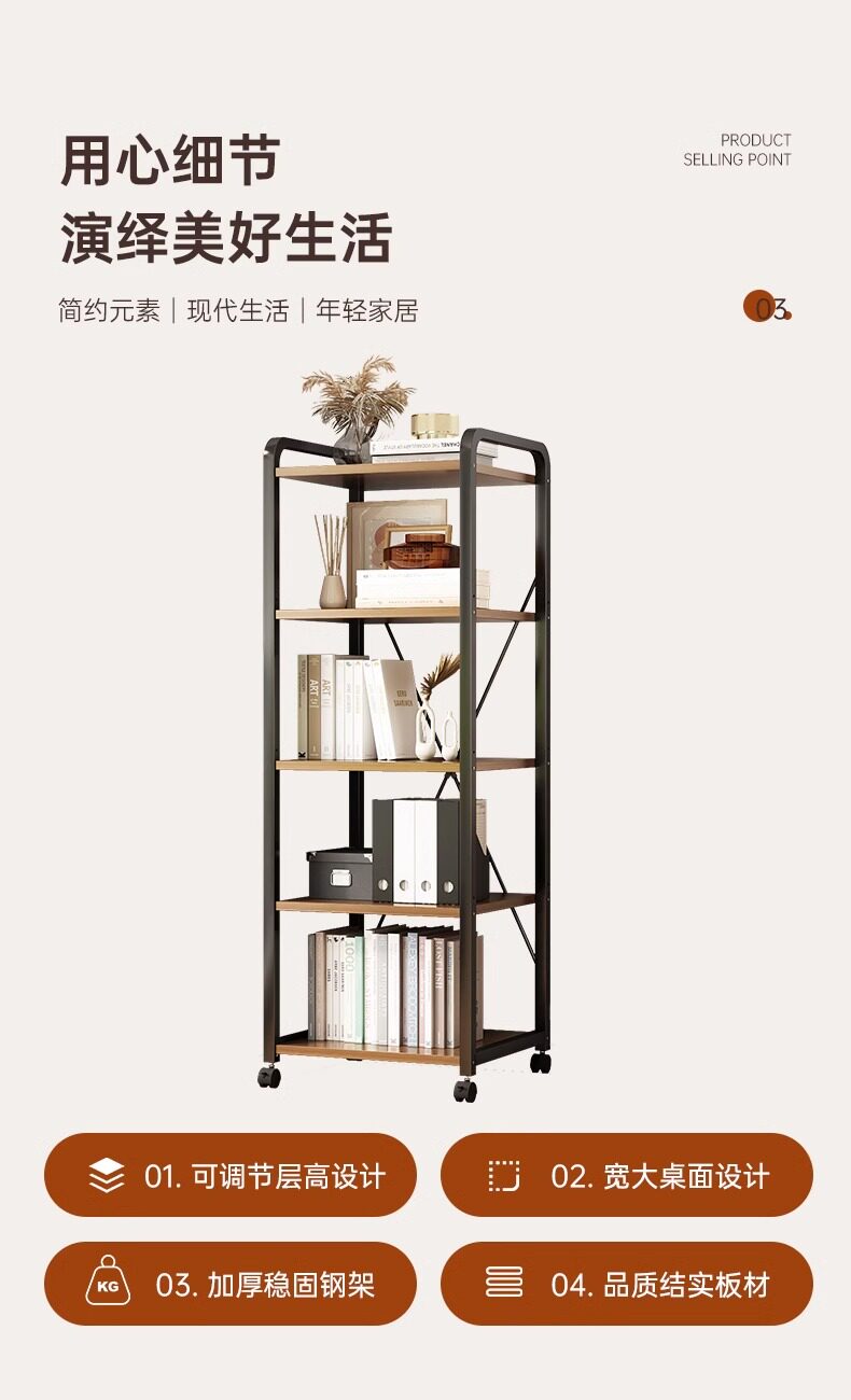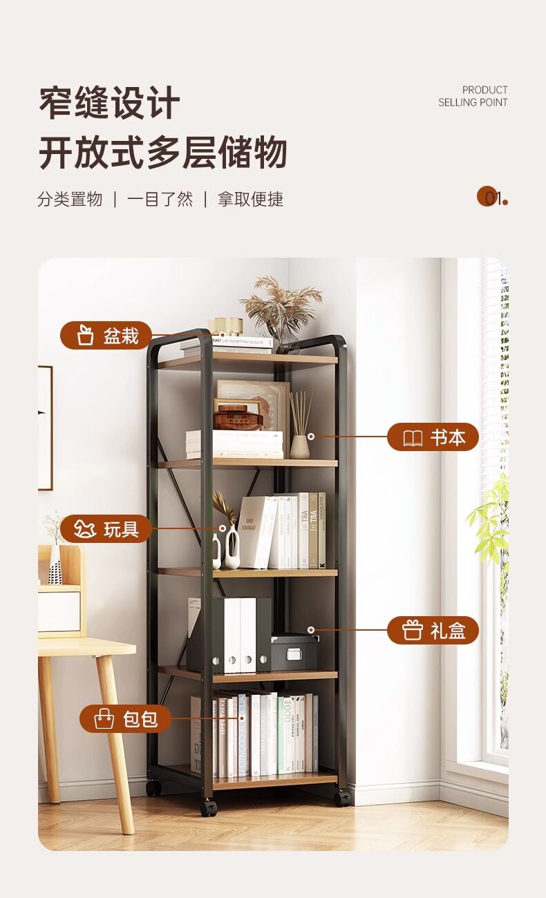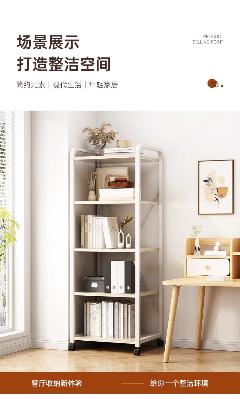 Мобильная книжная полка с посадкой на колесах многослойная стойка