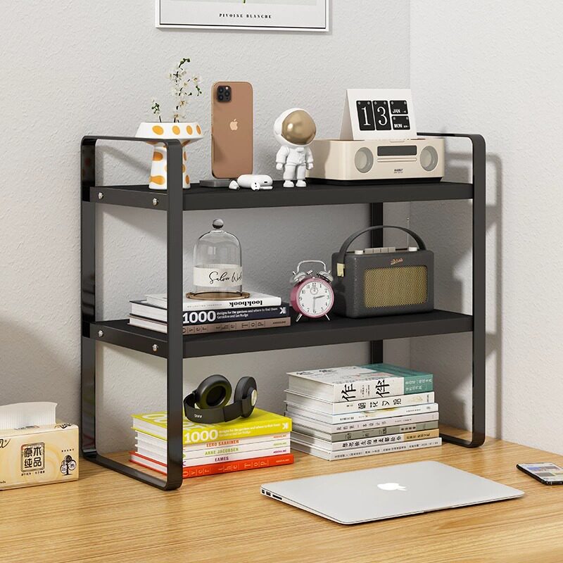 Настройка хранения на рабочем столе стоит на стойке книжных шкафов и книжных шкафов. Двухсторонняя полка для хранения офисных семинаров невелика