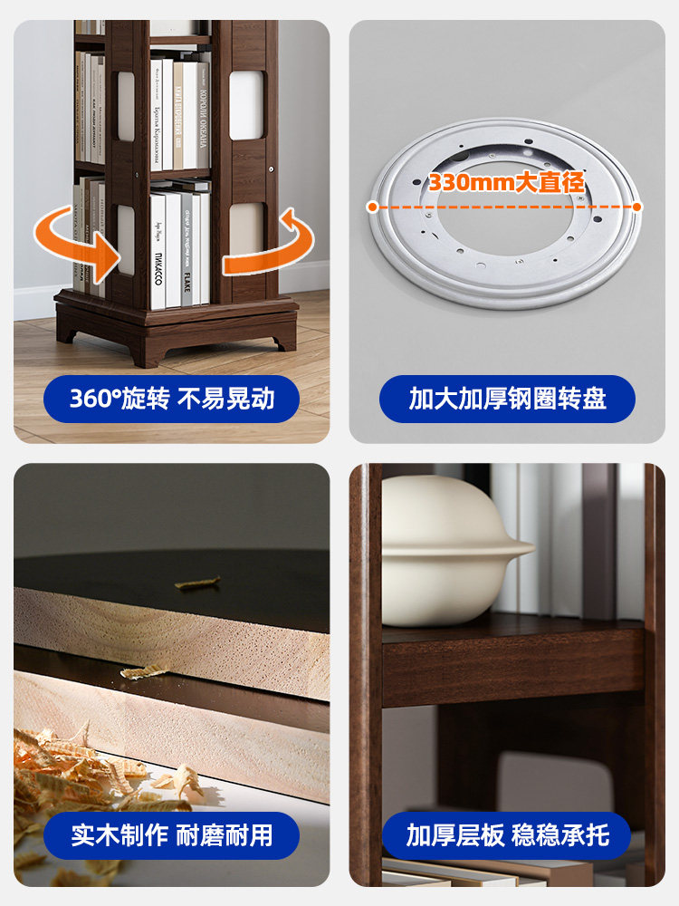 Крутящаяся книжная полка, книжный шкаф из натурального дерева, система хранения для школьников