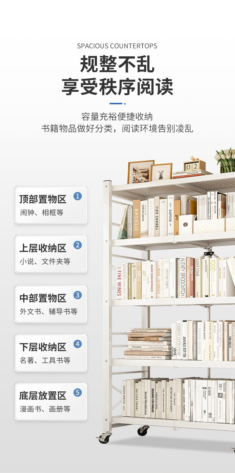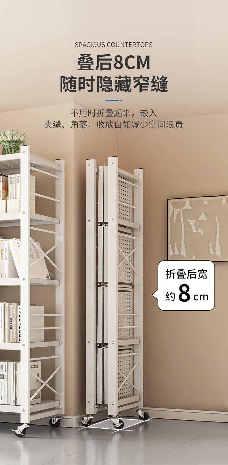 Складная книжная полка, съемные полки, стеллажи на колесиках, декоративные напольные стеллажи, многослойные железные полки для хранения в гостиной.
