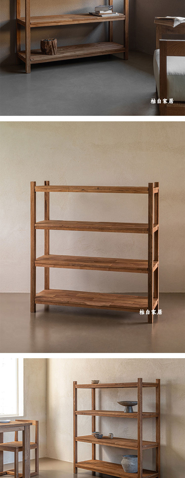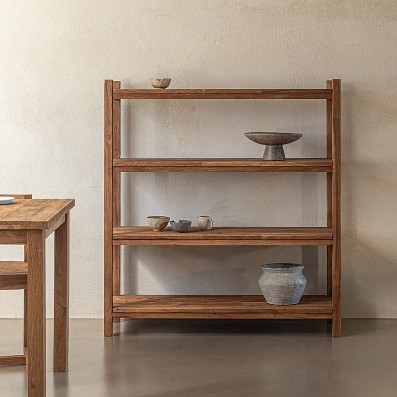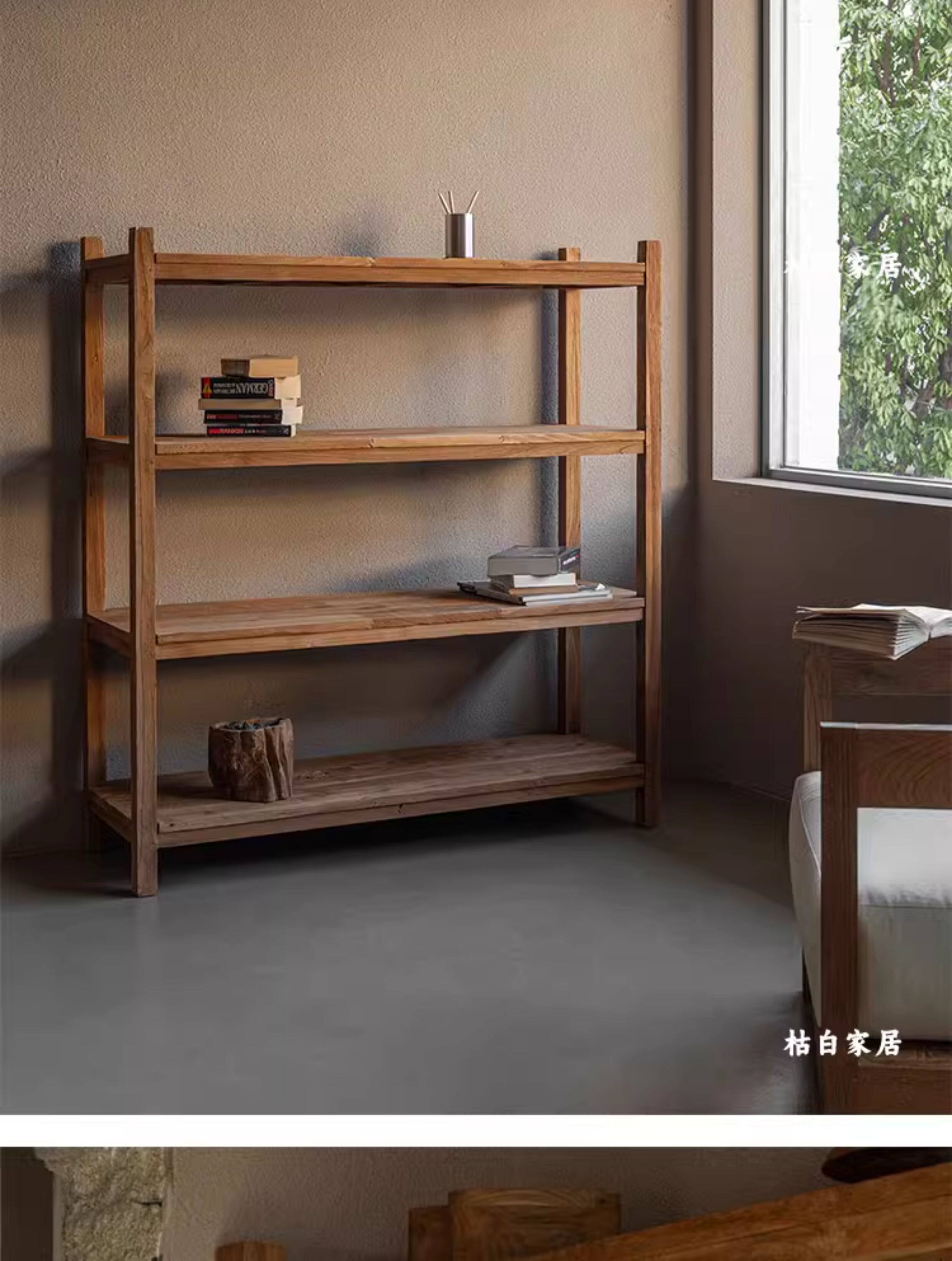 枯白 Стеллаж Bogu в стиле ваби-саби, стеллаж для хранения, книжная полка из цельного дерева в стиле ретро, Duobao Pavilion, ресторан, простая витрина из вяза