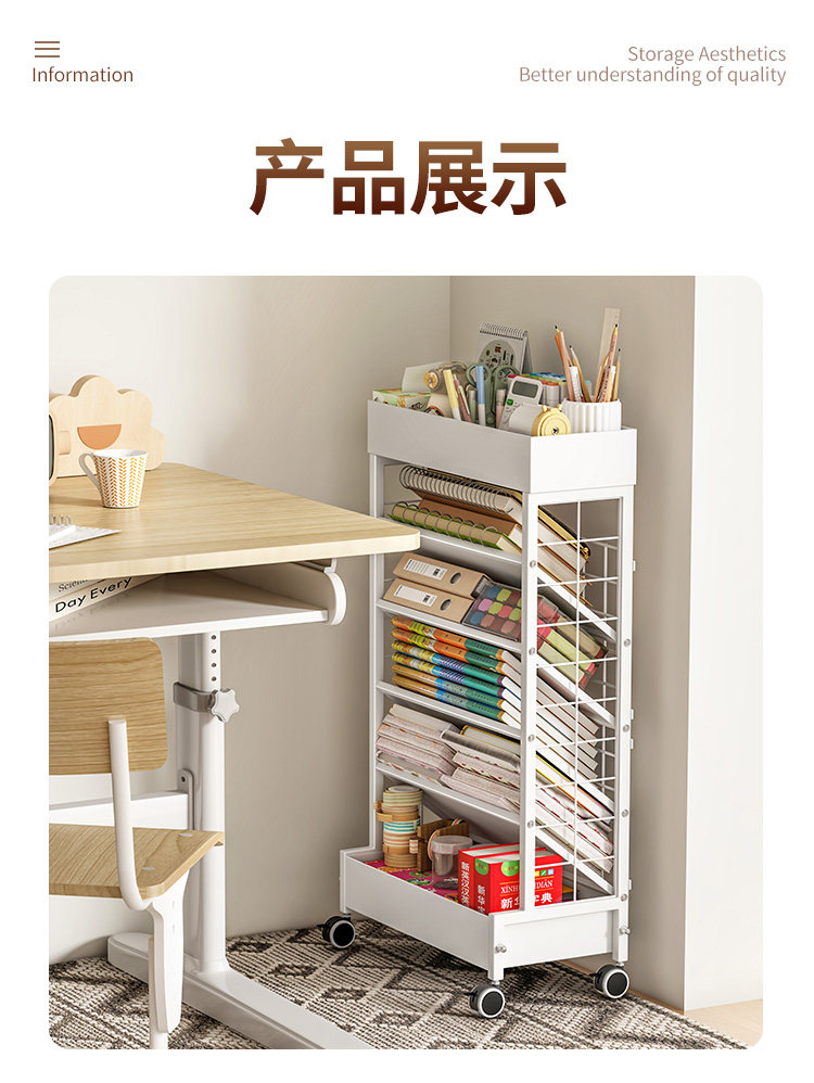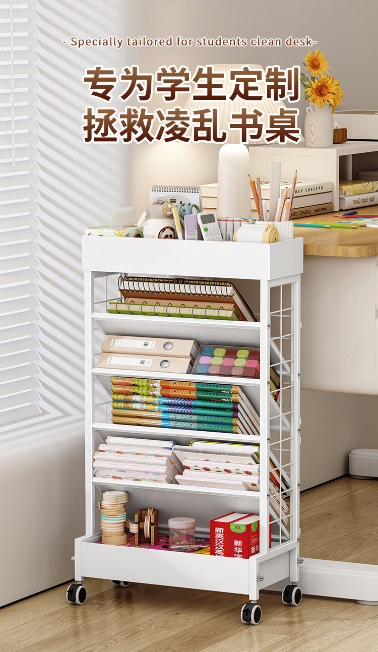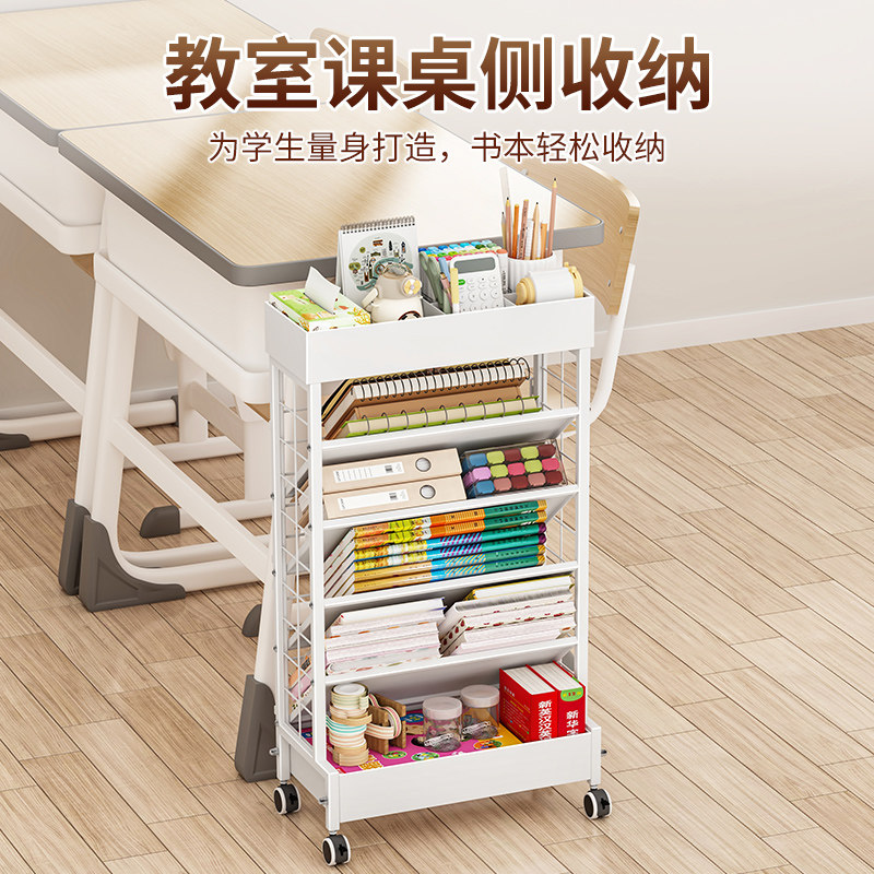 Подвижная настольная книжная полка, напольная боковая стойка для хранения, настольная книжная полка для хранения книг, маленькая книжная полка для школьников с колесиками