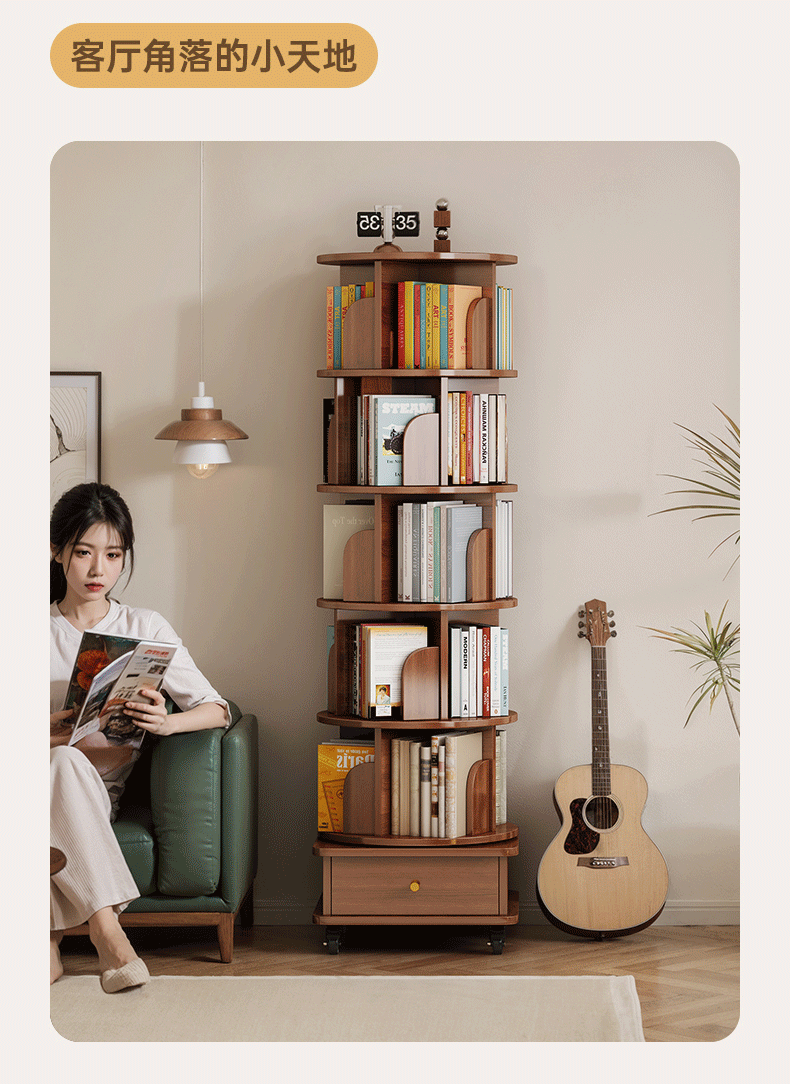 Крутящаяся книжная полка, диван, круглый книжный шкаф, скандинавский стиль