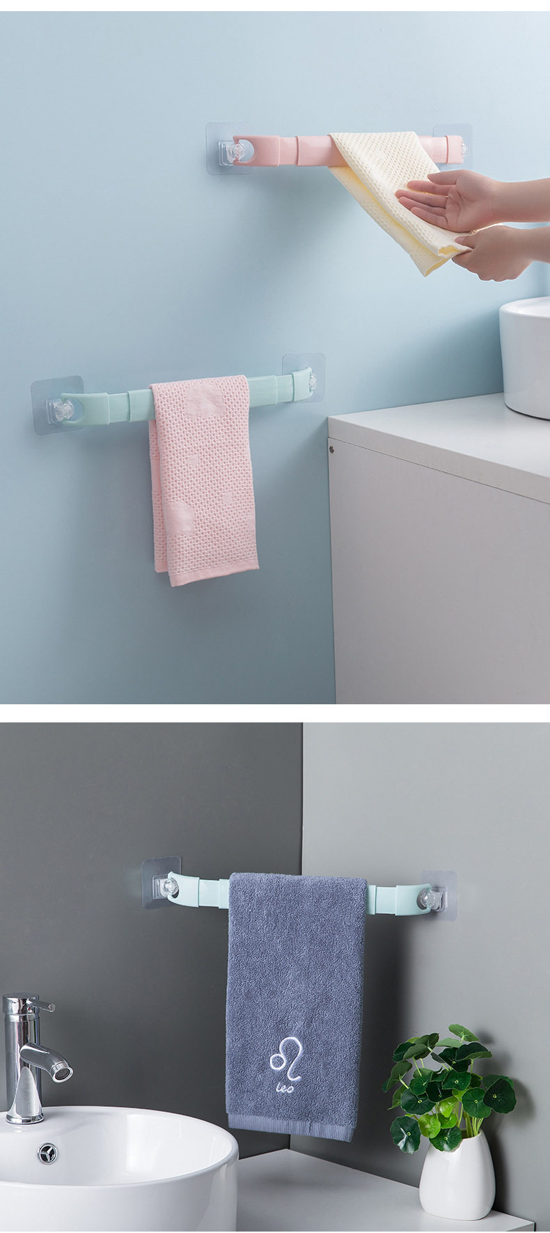 Расширение висящего полотенца вращение однократное выстрел, чтобы бесплатно пробивать ванные комнаты для ванной полотенца полотенец