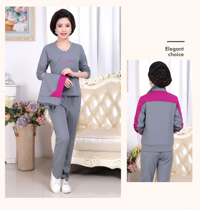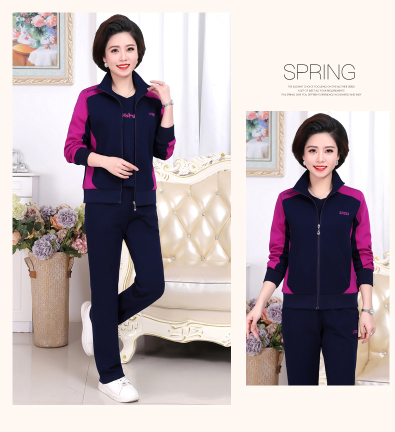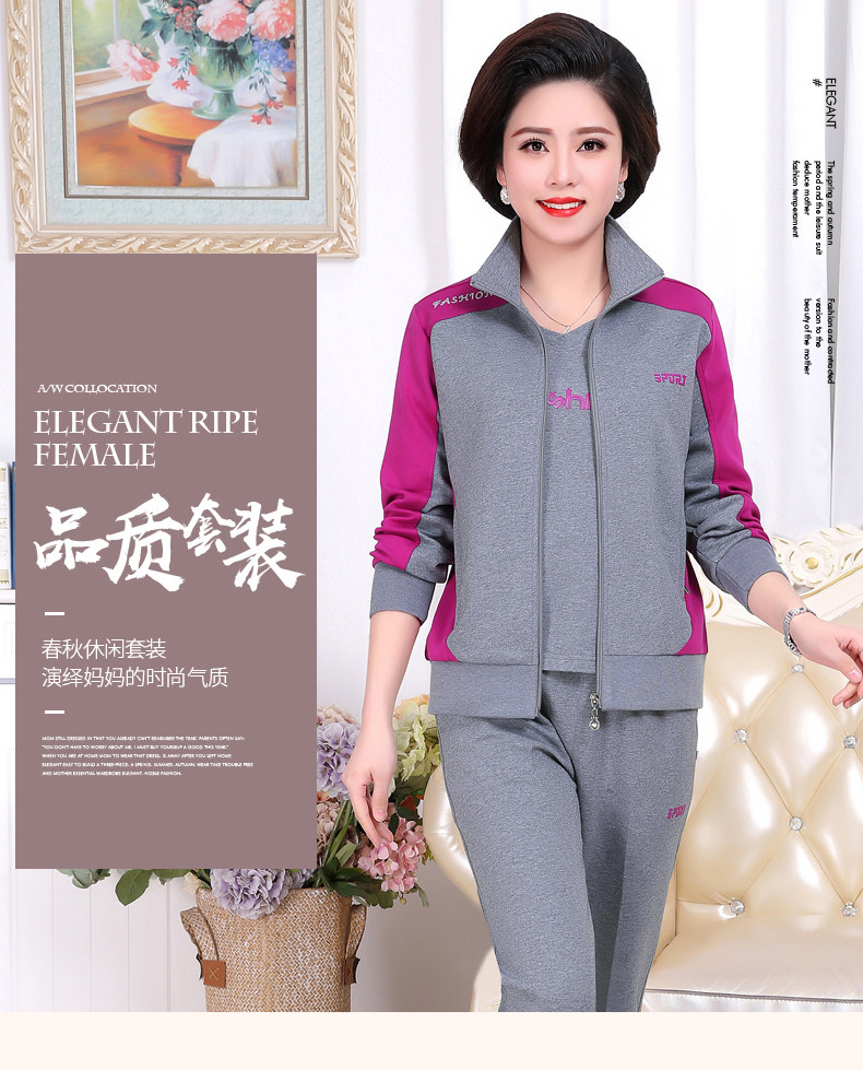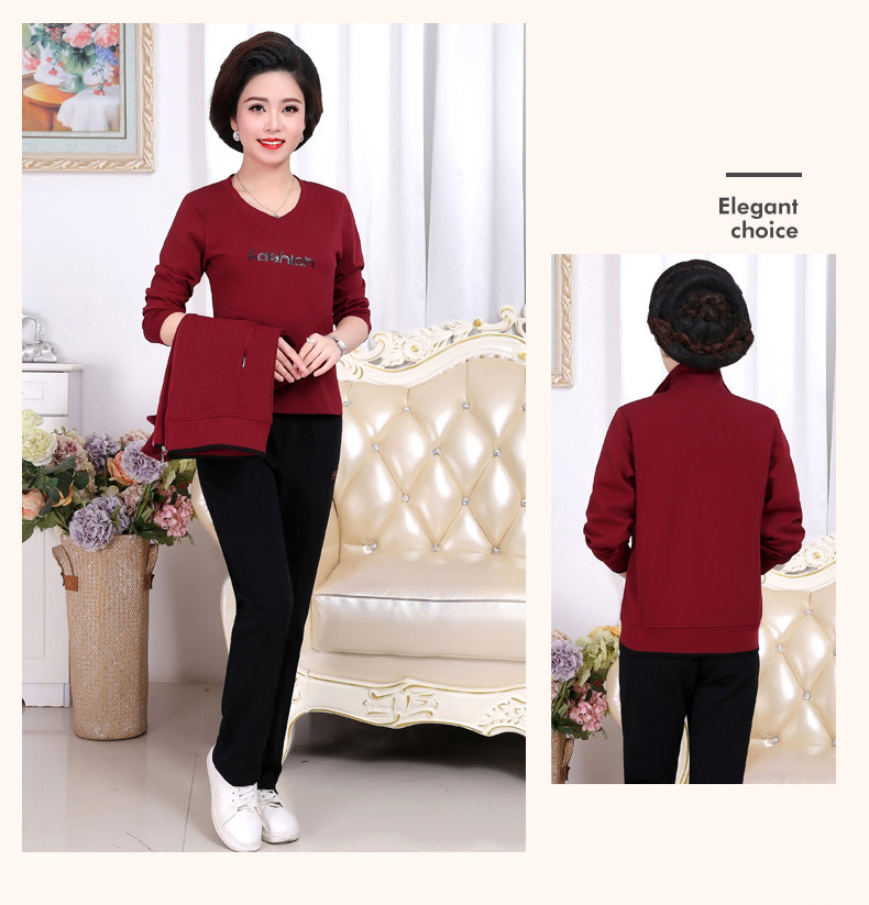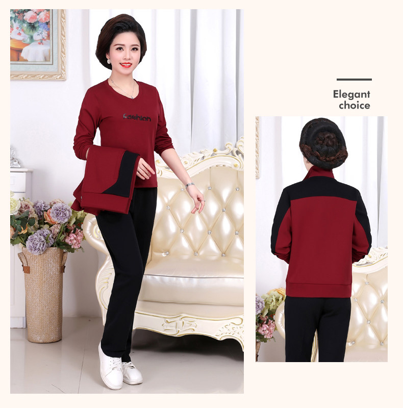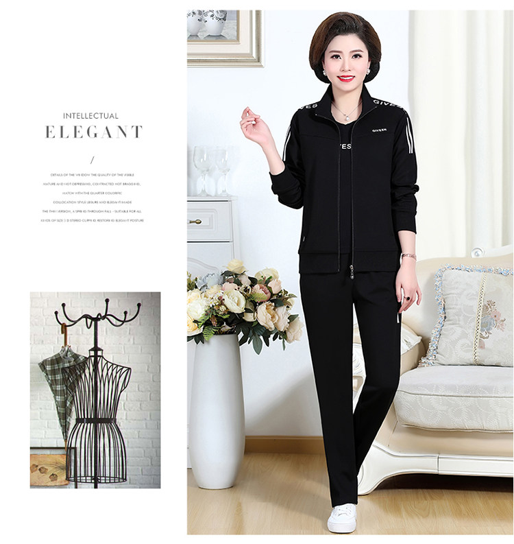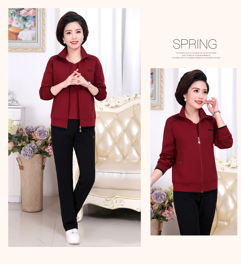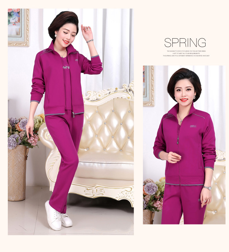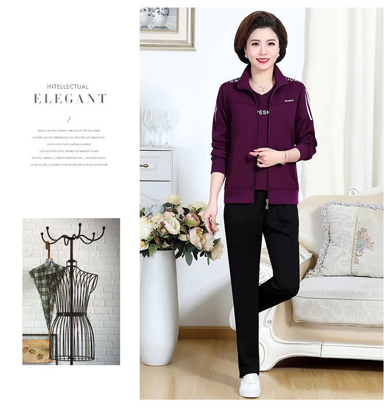 Осенний спортивный костюм для пожилых людей для матери, комплект, лонгслив для отдыха, куртка, для среднего возраста, 3 предмета, большой размер