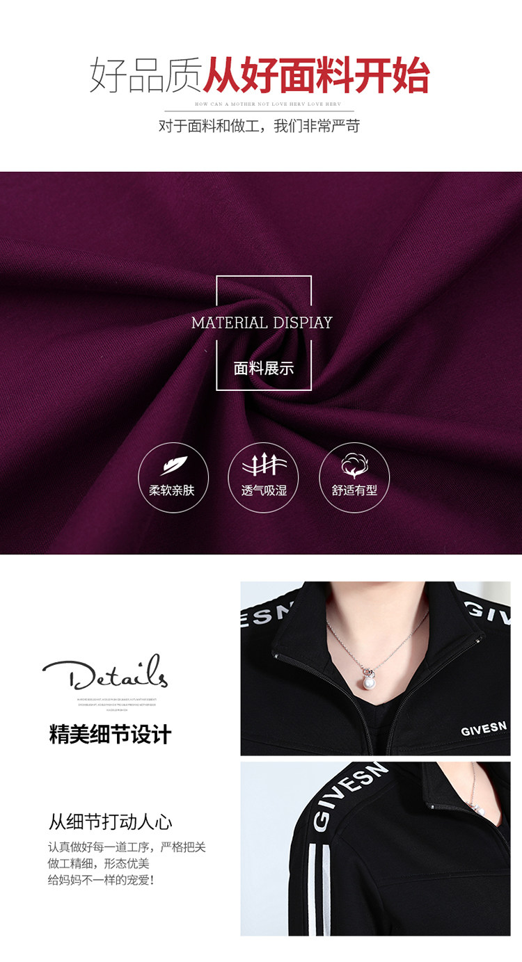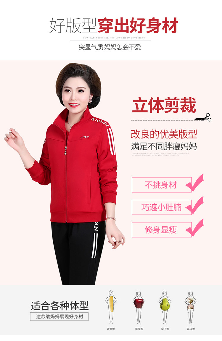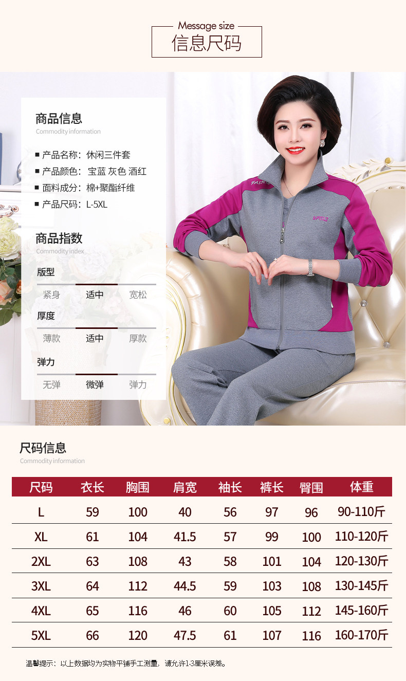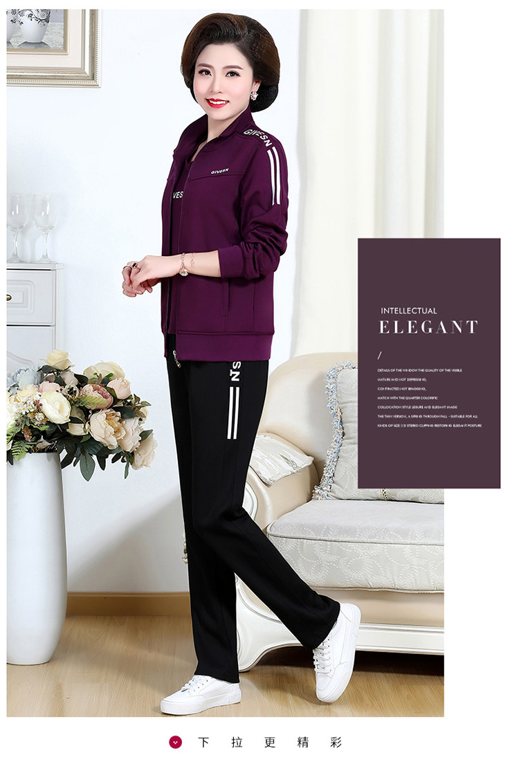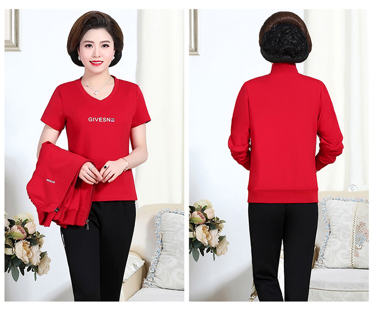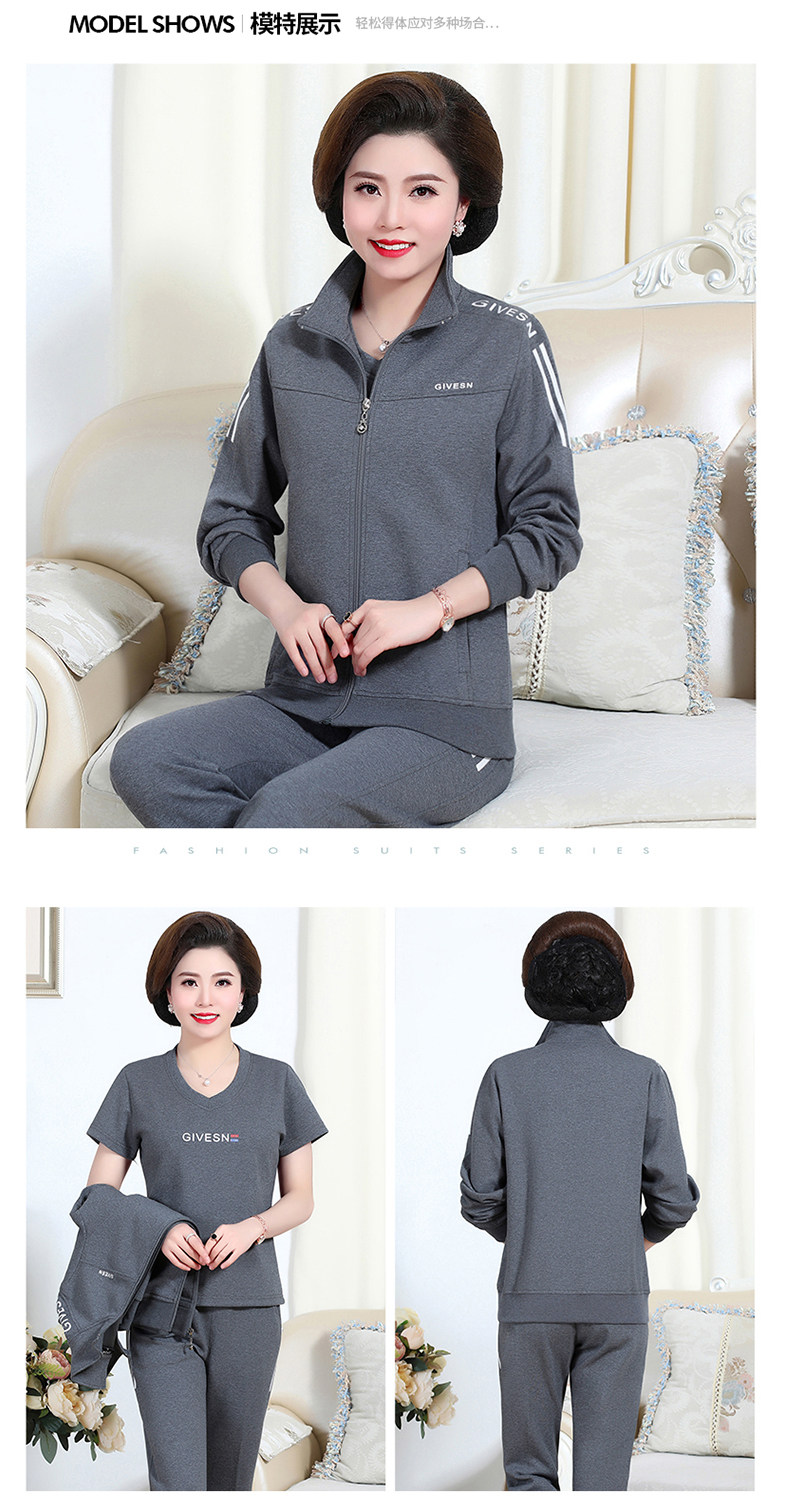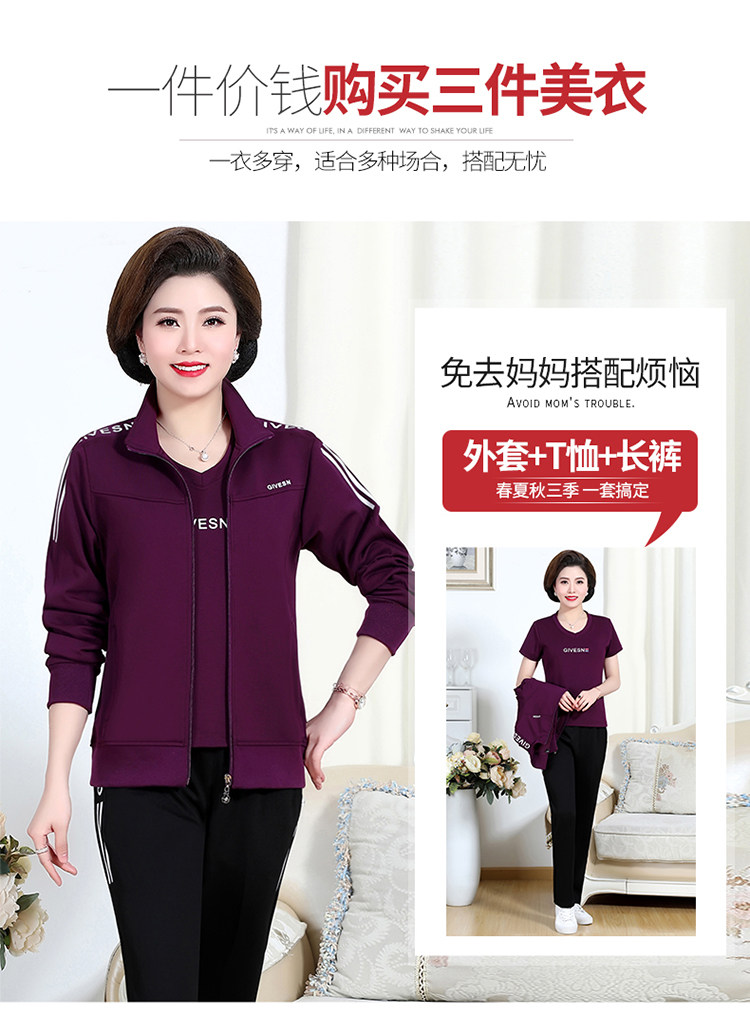 Осенний спортивный костюм для пожилых людей для матери, комплект, лонгслив для отдыха, куртка, для среднего возраста, 3 предмета, большой размер