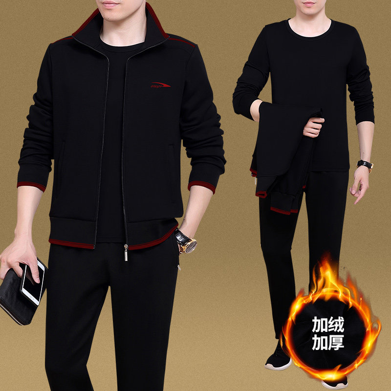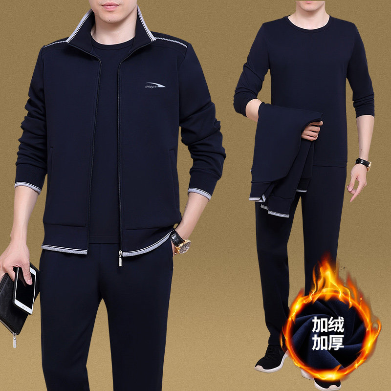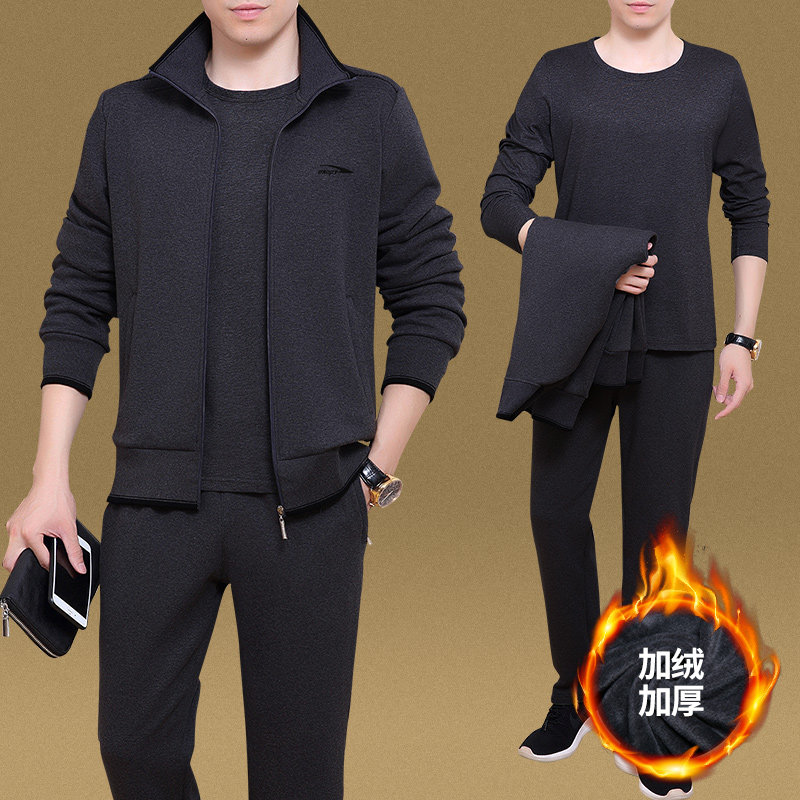 Демисезонный спортивный костюм, утепленный комплект для пожилых людей для отдыха, 3 предмета, для среднего возраста