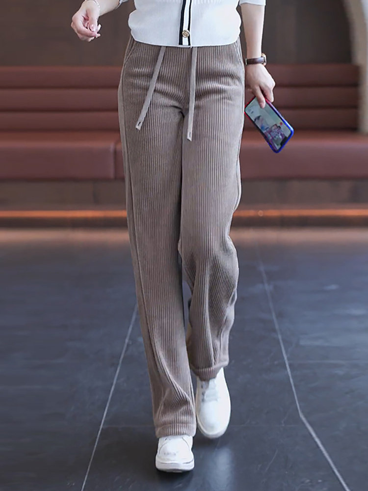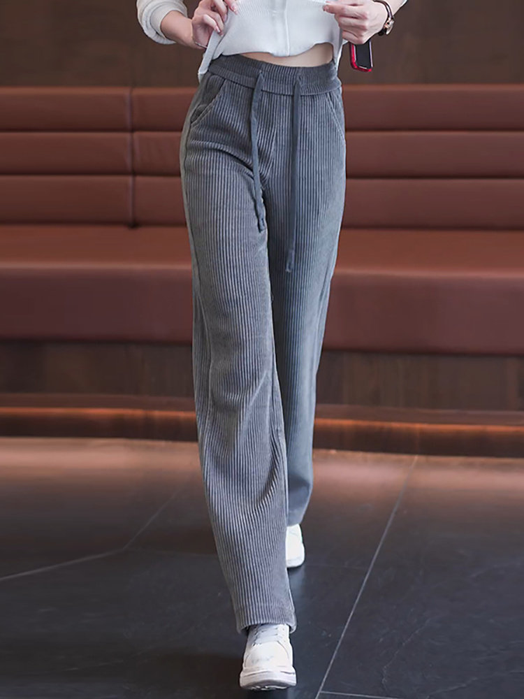 Весенние вельветовые штаны, высокая талия, большой размер, 2023, тренд сезона, свободный прямой крой