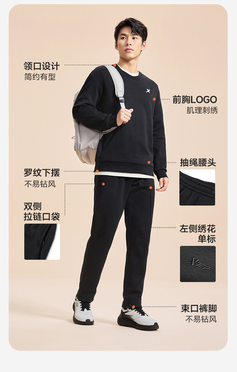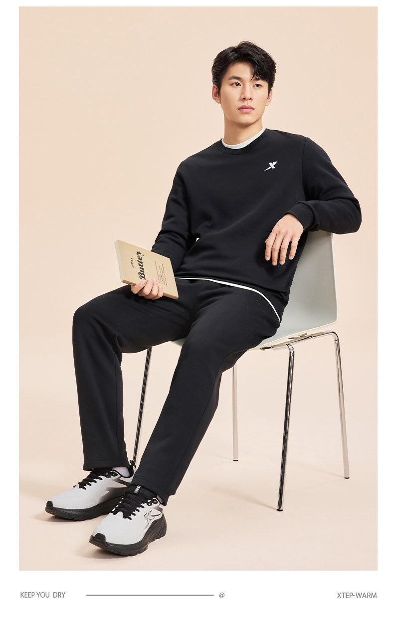 Xtep, демисезонный утепленный спортивный костюм, трикотажный комплект для отдыха, штаны, оверсайз