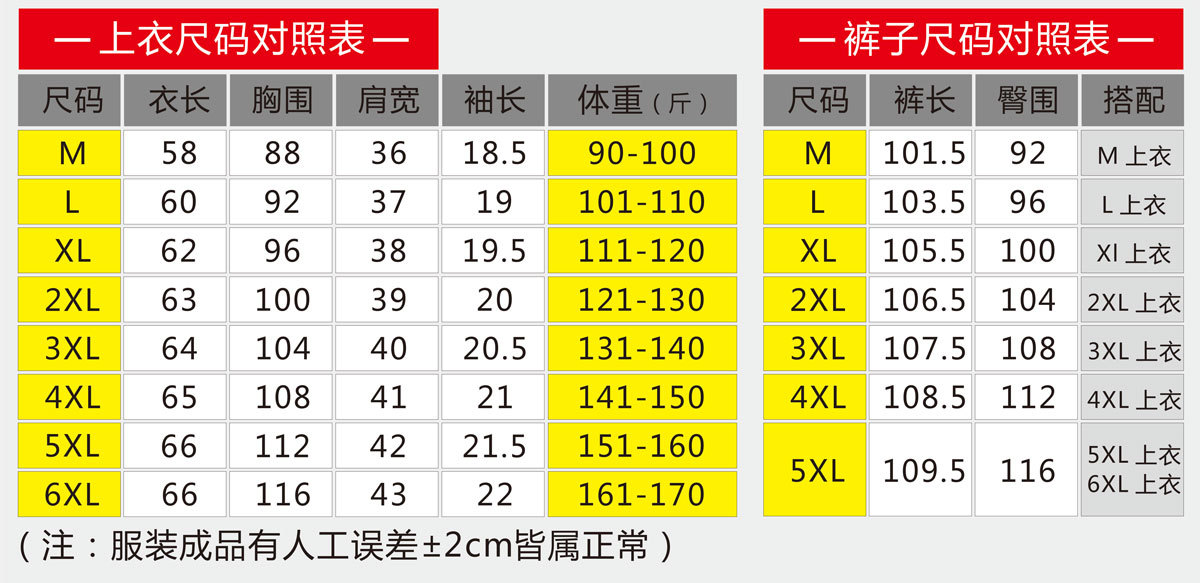 | Размер: | М (подходит для 90 котт-100 кот), L (подходит для 101 кот-1110 кот), XL (подходит для 111 Catties-120 Catties), 2xl (подходит для 121 Catties-130 Catties), 3xl (подходит для 131 кот-140 кот), 4XL (подходит для 141 кот-150 кот), 5xl (подходит для 151 Catties-160 Catties), 6xl (подходит для 161 Catties-170 Catties) |