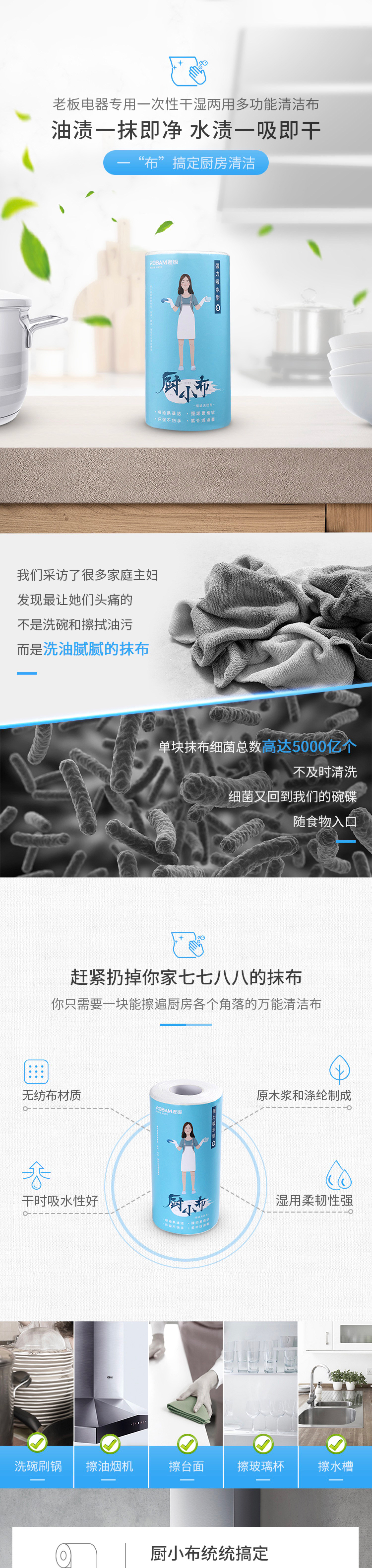 Robam/Boss Kitchen Kitchen xiaobu Kitchen Dispolase влажная влажная двойная двойная многофункциональная чистая ткань