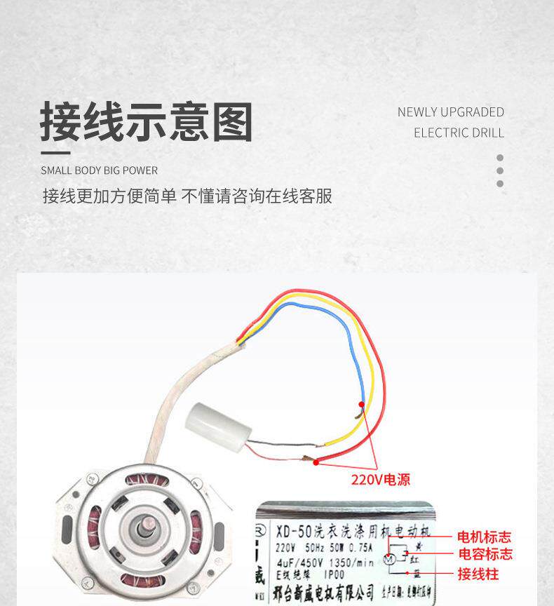 - Осушающий двигатель мощностью 255 Вт + конденсатор + водонепроницаемый + тормоз