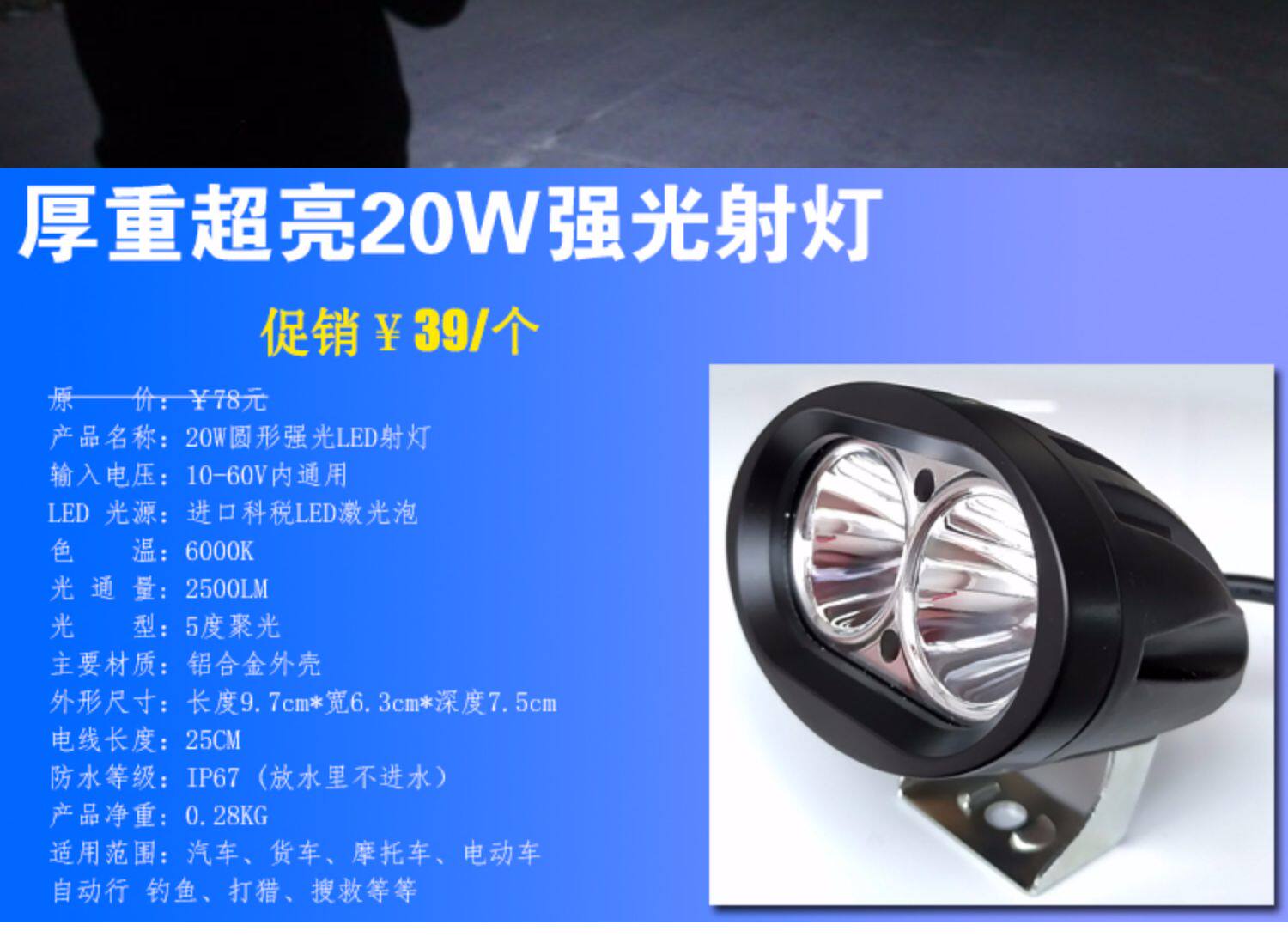 Супер яркий светодиодный внедорожник, потолочный светильник, 12v, 24v, 20W
