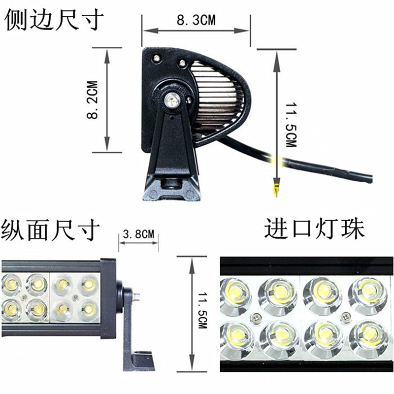 Широкий спектр применения: Этот светильник является вспомогательным. Это может улучшить видимость водителей и пешеходов, участвующих в окружающем движении в дождливые дни, туманные дни и на темных горных дорогах, так что транспортные средства и пешеходы могут быть обнаружены на расстоянии, что способствует безопасному вождению.Его можно эффективно использовать во внедорожных транспортных средствах, инженерных транспортных средствах, включая экскаваторы, гравийные машины, карьерные самосвалы, снегоочистители, бульдозеры, краны, асфальтоукладчики, деревообрабатывающие машины и т. д., грузовые автомобили, автобусы, корабли, машины для добычи песка, вилочные погрузчики, квадроциклы, тележки, грузовики, пожарные машины, полицейские машины, бронетехника и грейферы. В качестве усиленного освещения используются страховые автомобили, автомобили связи и другие специальные транспортные средства. Если он оснащен преобразовательным источником питания 110 В/220 В, его можно использовать в гостиницах, скверах, сценическом освещении, на заводах и в горнодобывающих районах, в большой наружной рекламе, строительстве мостов, корабельных маяках, ночных пейзажах и освещении.