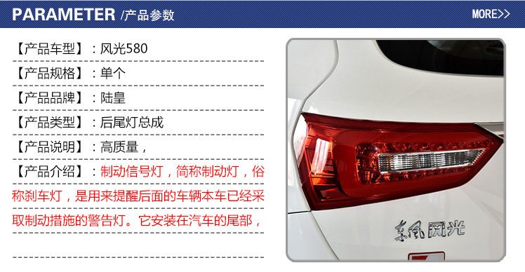 Донгфенг пейзаж 580 хвостовой лампы в сборе после комбинированного фар Тормозные лампы поверните к автомобильным аксессуарам для бахроны лампы