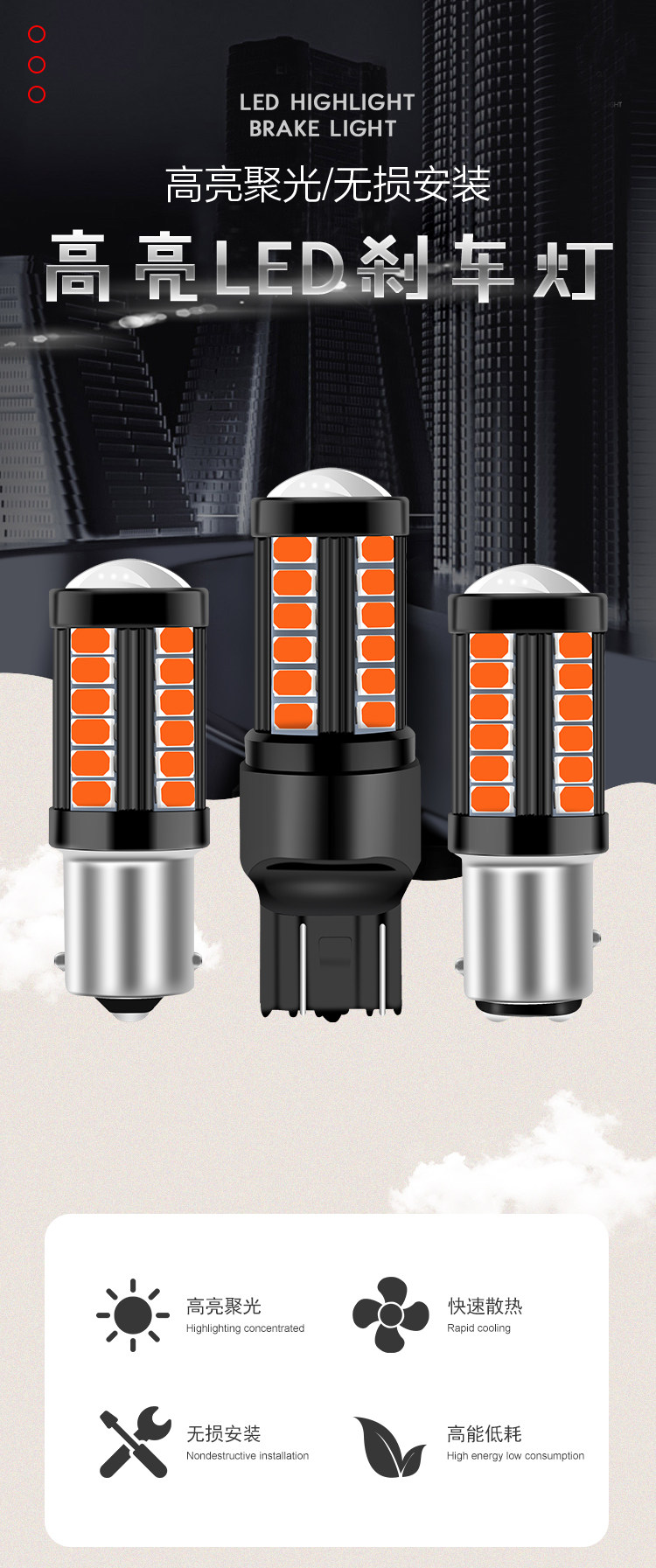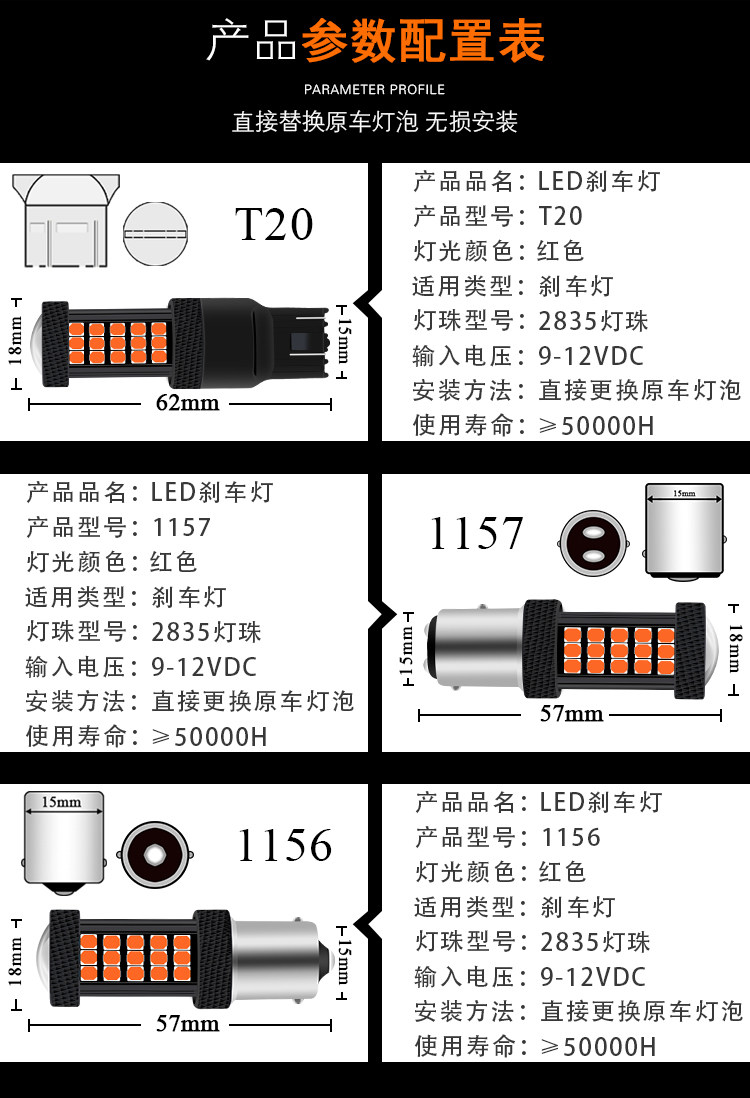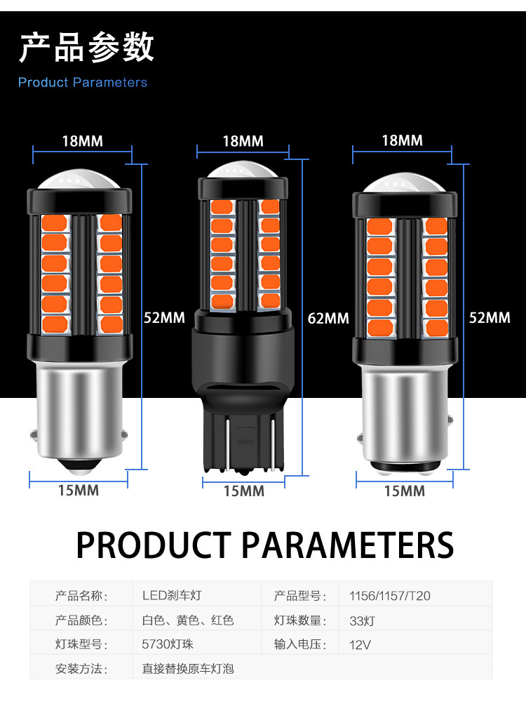 Модификация светодиодной тормозной лампы Ультра -высокая автомобильная тормозная лампочка после тумана Cart T2057 1156