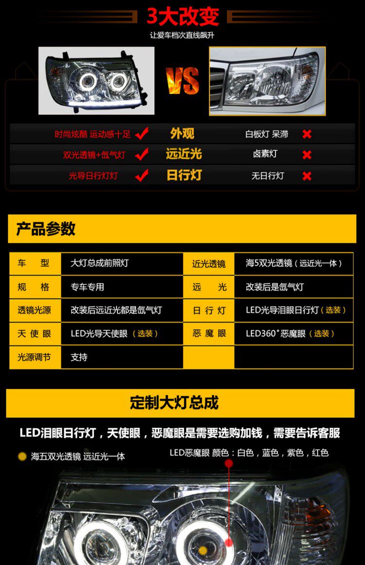 Применимо к Toyota LC100 Большой ламп модифицированной земельный крейсер 4700 uzj100 светодиодный двойной свет