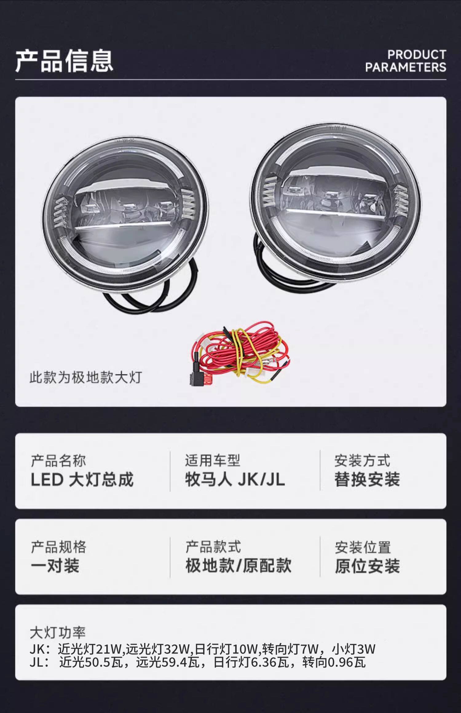 - Канадская версия + правила США, китайский стандарт Wrangler JL/JT [Meijia Laser Furights - 1 пара цветовых огней]