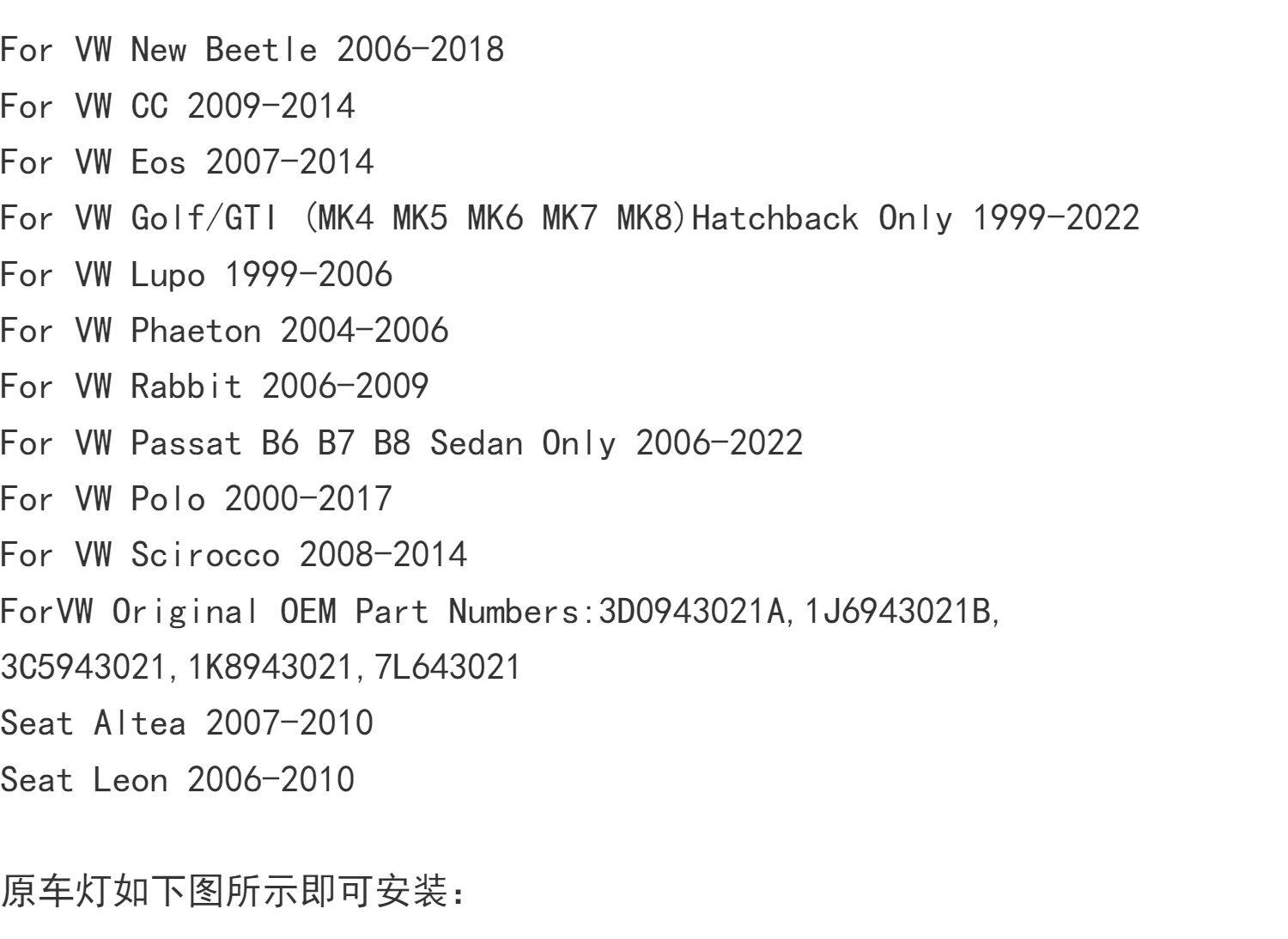 Применимый Volkswagen Golf4 5 6 7.5Rline GTI Декодирование светодиодной задней лампы номерного знака