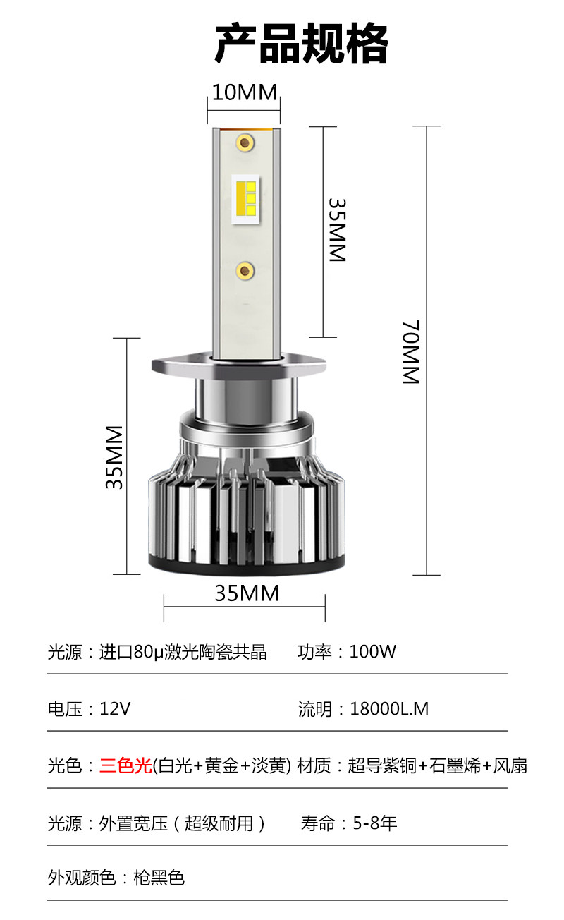 - H7 Double Plug (12V Three -color+100 Вт) 1 цена подкрепления 2 будет снят 2