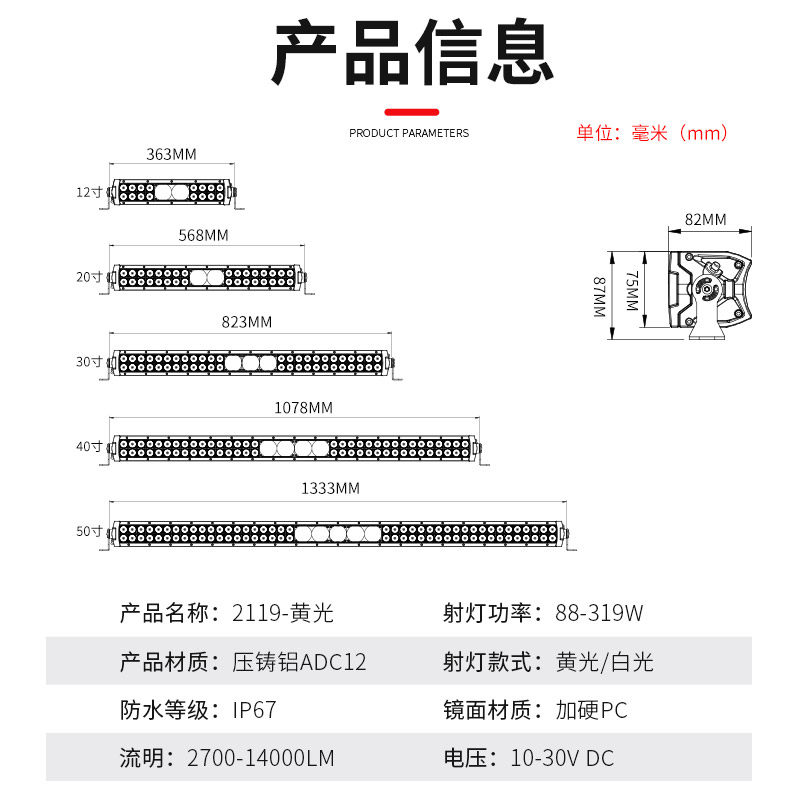 | Цвет: | 12 дюймов 88 Вт белый свет 1, 12 дюймов 88 Вт желтый свет 1, 20 -INCH 140W Белый свет 1, 20 -INCH 140 Вт Желтый свет 1, 30 -INCH 196W White Light 1, 30 -INCH 196W Желтый свет 1, 40, 259W, 40, 259W, 50 -INCH 319W Белый свет 1, 50 -INCH 319W Желтый свет 1 |