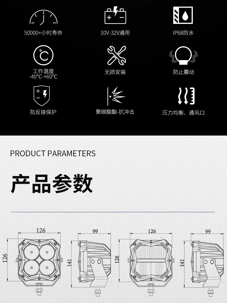 Внедорожник, багажный светильник, светодиодный танк, прожектор