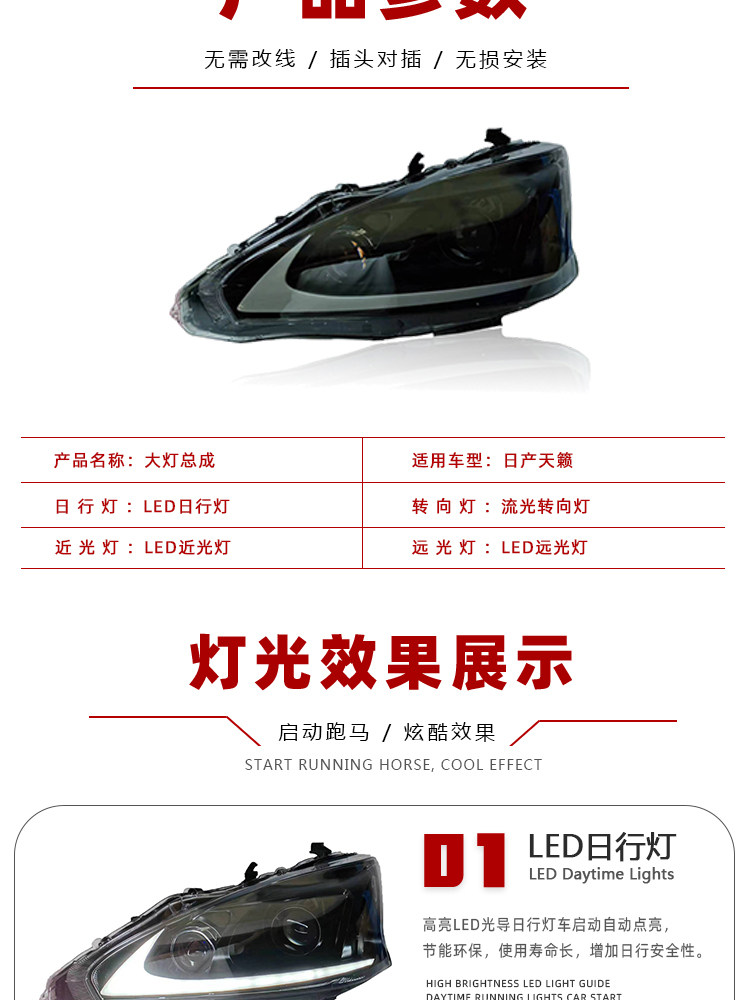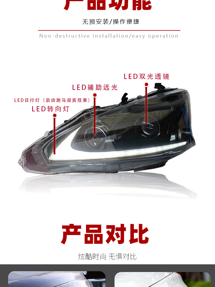 Подходит для 13-15 Nissan Teana Furlight Searling Medie Madified Led Lens Furlight Shineming Signing Sign
