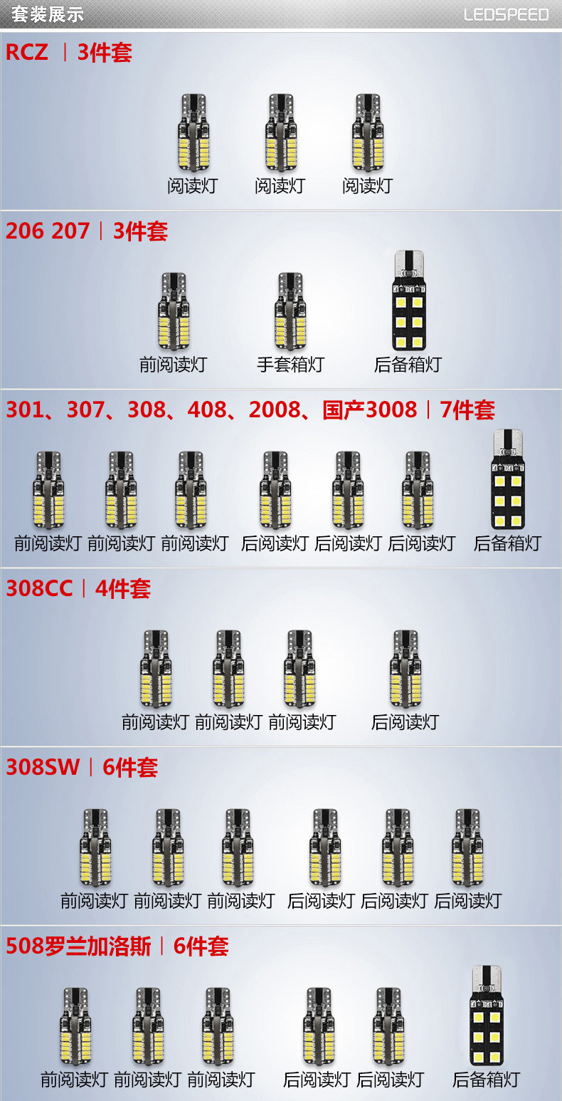 | Цвет: | 301 7 штук, 307 7 комплектов, 308 7 штук, 16 моделей 308 (без пост -чтения для съемки) 4 комплекта, 308S 7 -Piece Set, 308cc 4 -piece set, 308SW 6 -Piece Set, 408 7 штук, 508 Roland Galos 6 -Piece Set, Другие годы 508 15 штук, 12-13 508 14 штук, Onemic 3008 7 -Piece Set, 15 домашнего 3008 с панорамным люком на крыше 6, Импорт 3008 6 -Piece Set, [Свет для чтения: белый, ледяной синий, теплый белый] Обратите внимание., RCZ 3 PIECE SET, 206 3 штук, 207 3 штук, 1 пара общих огней |