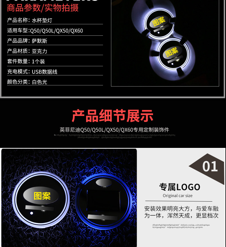Подходит для подставок Infiniti Water Cayters Q50Q50LQX50QX60 Multi -Color Atmosphere Light Atmosphere Light Indoor Light