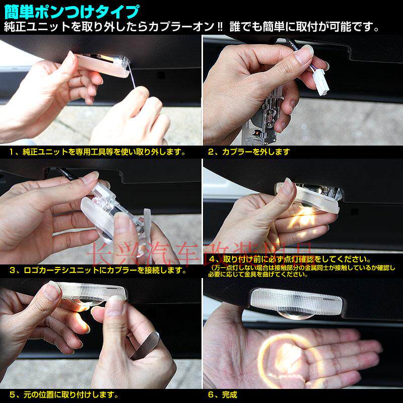 Этот специальный автомобиль выделенный автомобильный светодиодный дверной лампу приветствует лампу, поставляется с функцией декодирования, не нужно изменять оригинальную автомобильную линию, напрямую удалить лампы на оригинальном автомобиле, а затем установить этот продукт, подключить и воспроизводить, неразрушающую установку , просто и удобно.