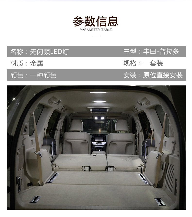 | Цвет: | [Задние фонари номерного знака Prado/2 шт.], [Лампа для чтения внутри Prado/6 шт.], [Педальные фонари Prado/4 шт.], [Лампа для косметического зеркала Prado/2 шт.], [Лампы для чтения внутри Highlander/9 шт.] |
