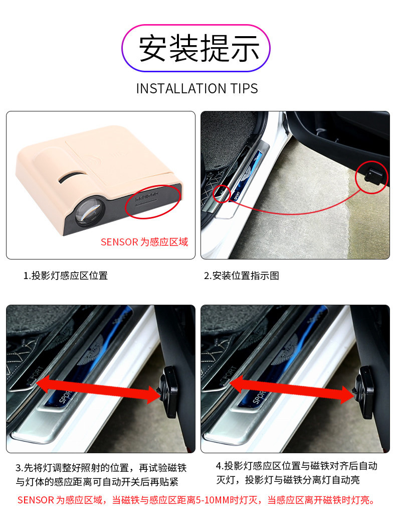 Приветственный свет в автомобиле, проекция двери, украшение дверного проема, лазерный датчик без проводов, напольный светильник на автомобиле, Сейлор Мун